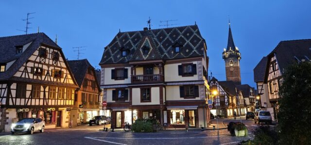 Der Einbau war etwas früher als geplant fertig und so entscheide ich kurzfristig, nach Obernai im Elsass weiter zu fahren. Hier gibt es in der Nähe der Altstadt einen kostenlosen und völlig ruhigen Stellplatz. Ein abendlicher Spaziergang durch die Altstadt ließ den sehr langen Tag ausklingen…