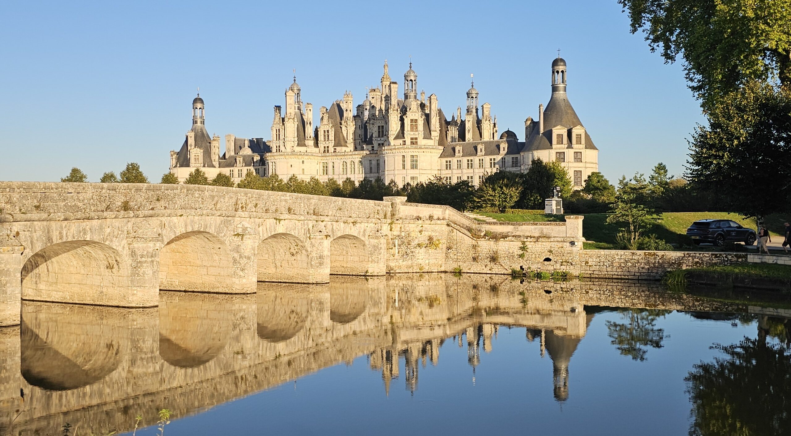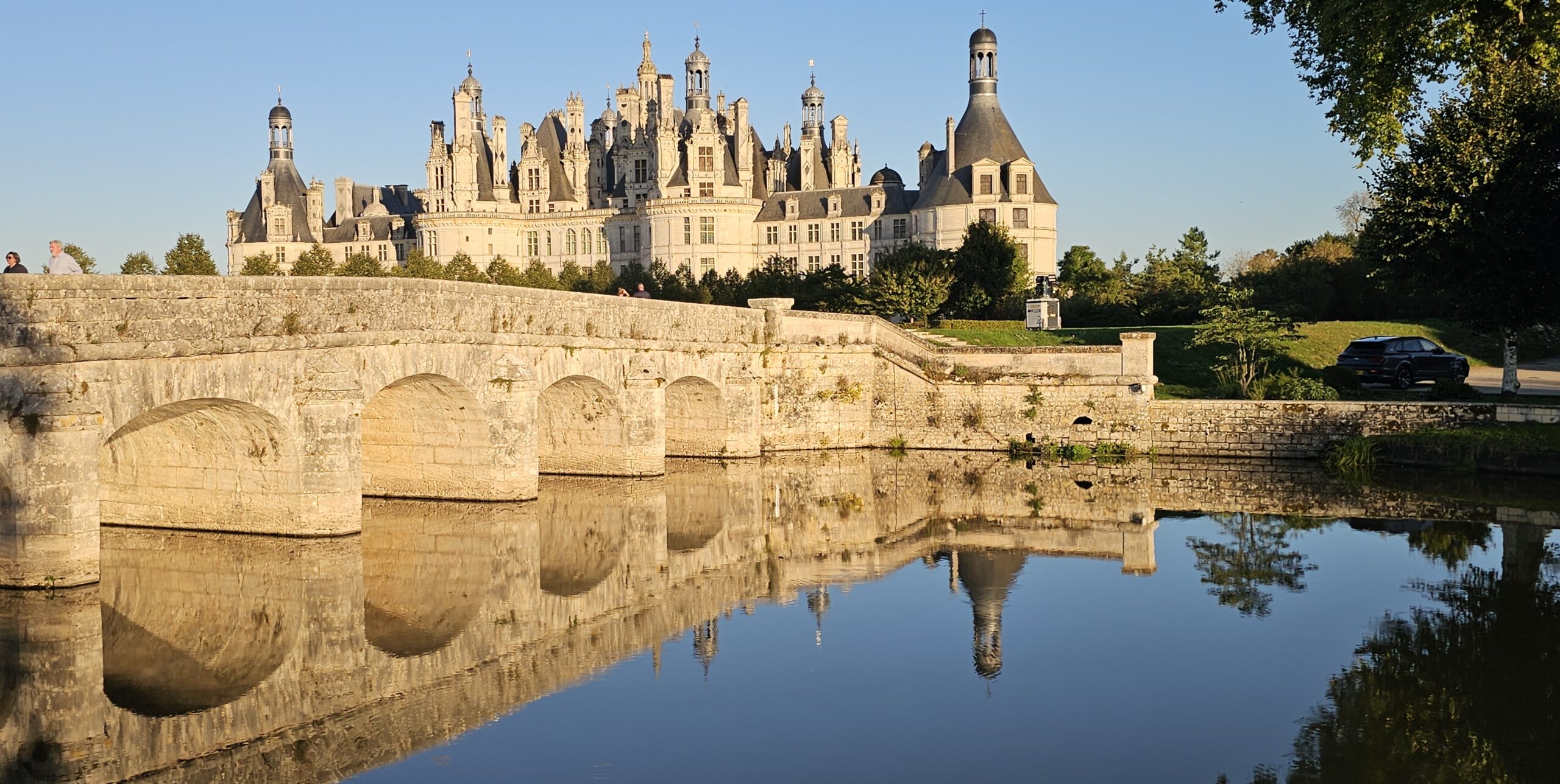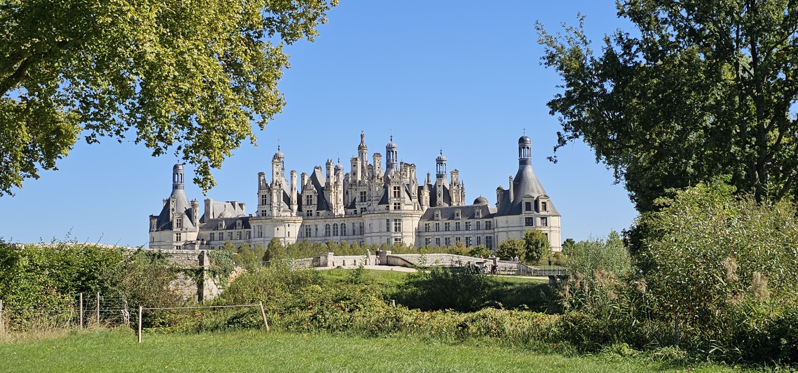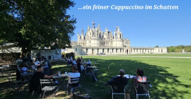 Abfahrt um 9 Uhr, wieder alles ohne Maut und Autobahn durch’s schöne, hügelige und weitläufige Land. Die Seine wird überquert und ist hier noch ein sehr kleines Flüsschen. Ankunft beim Schloss Chambord um ca. 13.25 Uhr.