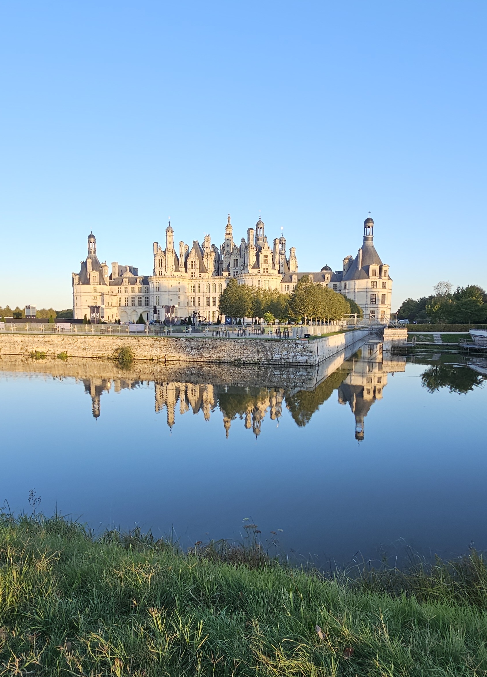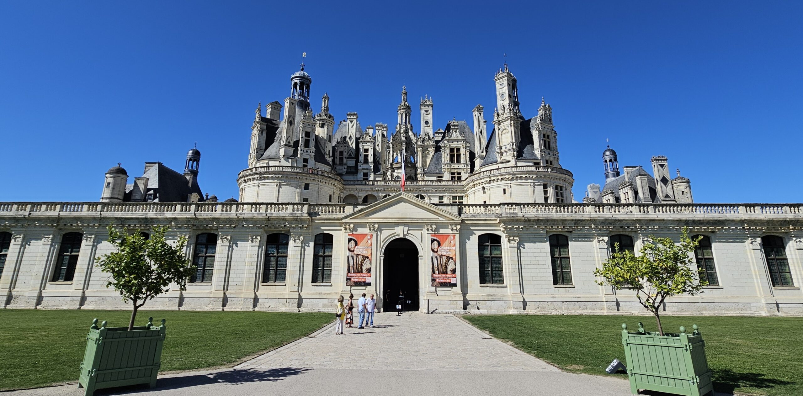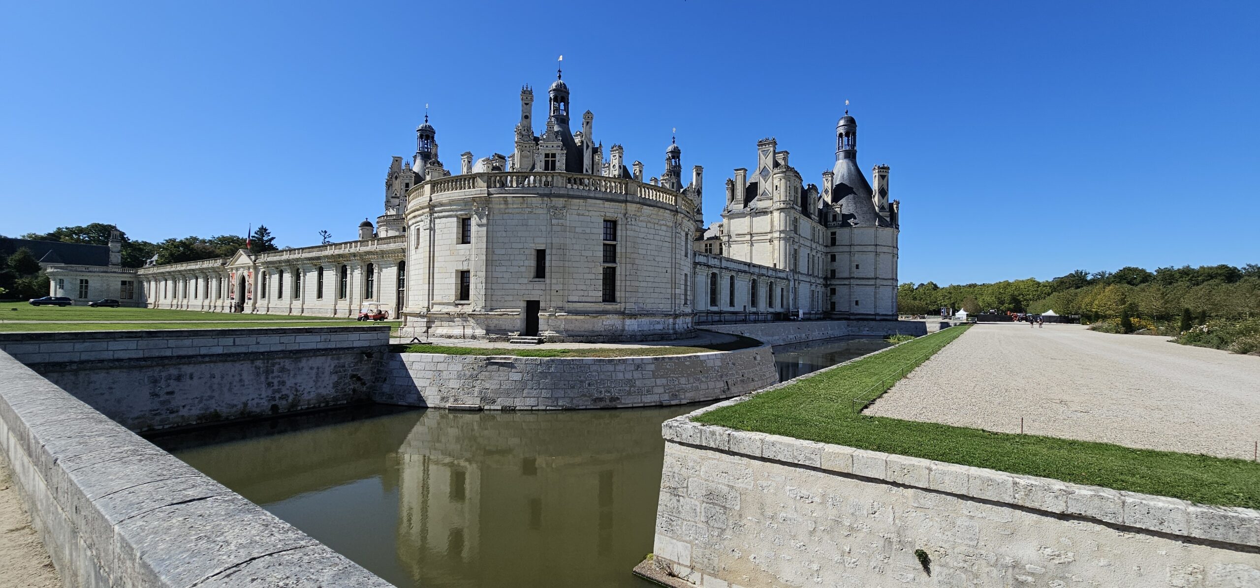 Abfahrt um 9 Uhr, wieder alles ohne Maut und Autobahn durch’s schöne, hügelige und weitläufige Land. Die Seine wird überquert und ist hier noch ein sehr kleines Flüsschen. Ankunft beim Schloss Chambord um ca. 13.25 Uhr.