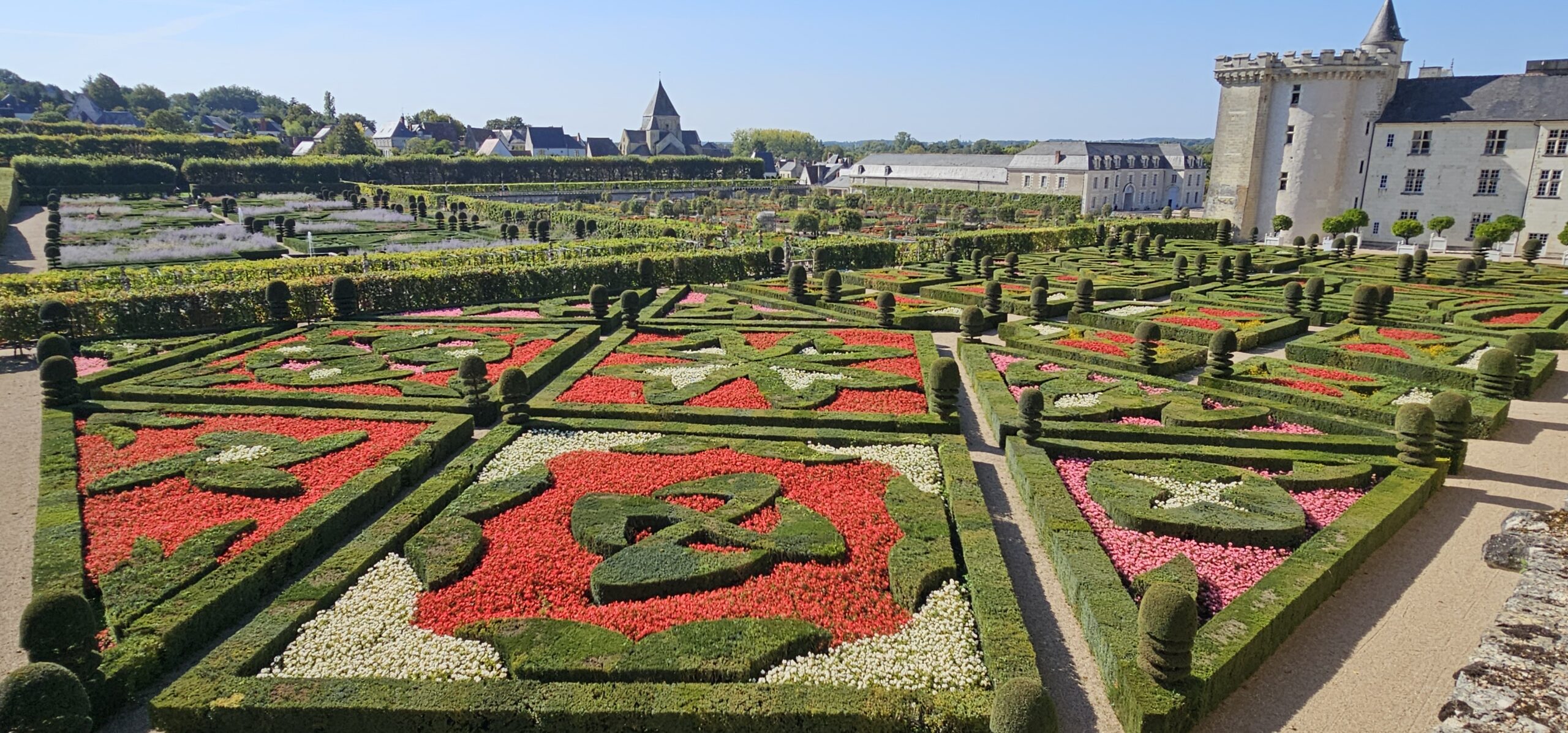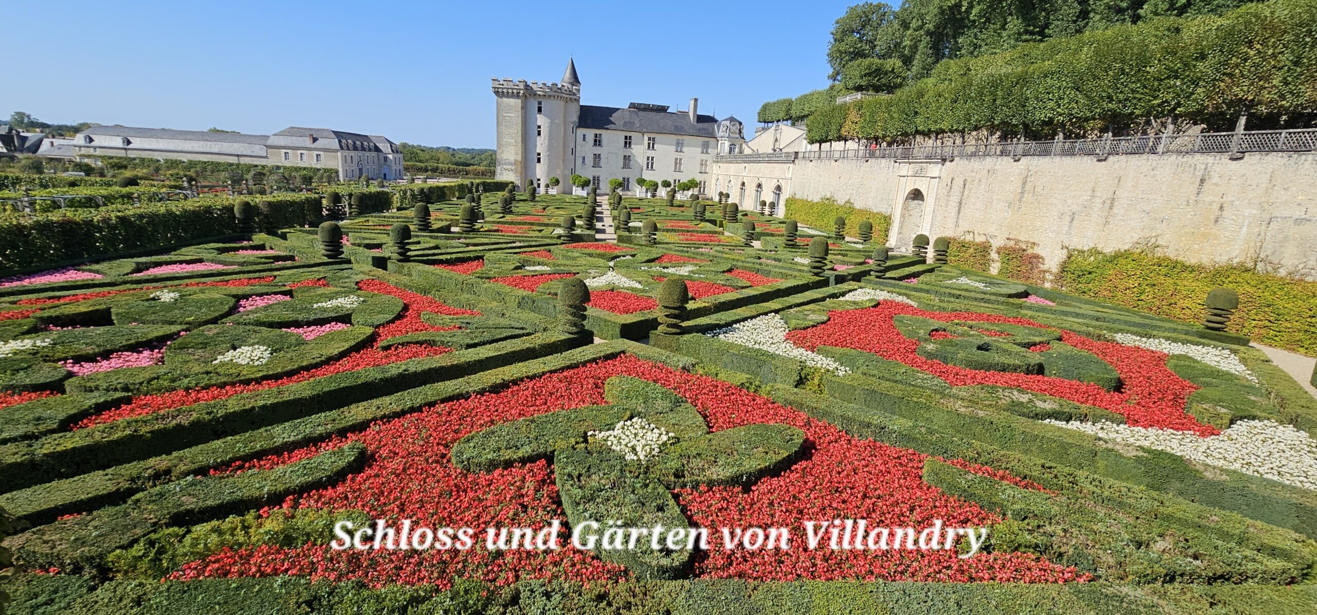 Auch hier sehr beeindruckende Anblicke. Danach Weiterfahrt zum Schloss Villandry mit seinen überaus schönen Gärten. Blumen und Alltagsgemüse, in 9 Quadraten symetrisch angelegt – wahrlich ein sehr schöner Anblick.