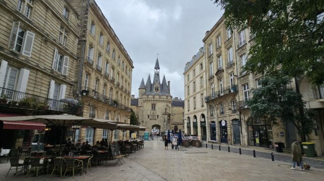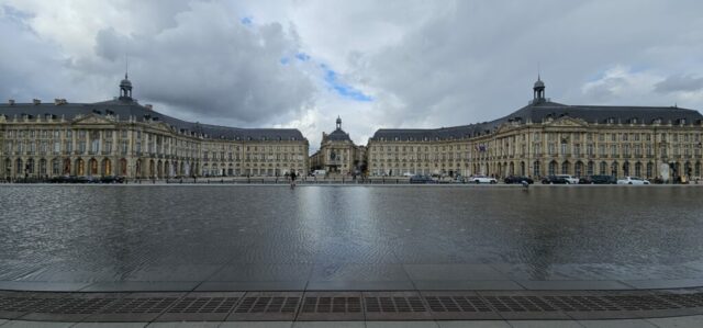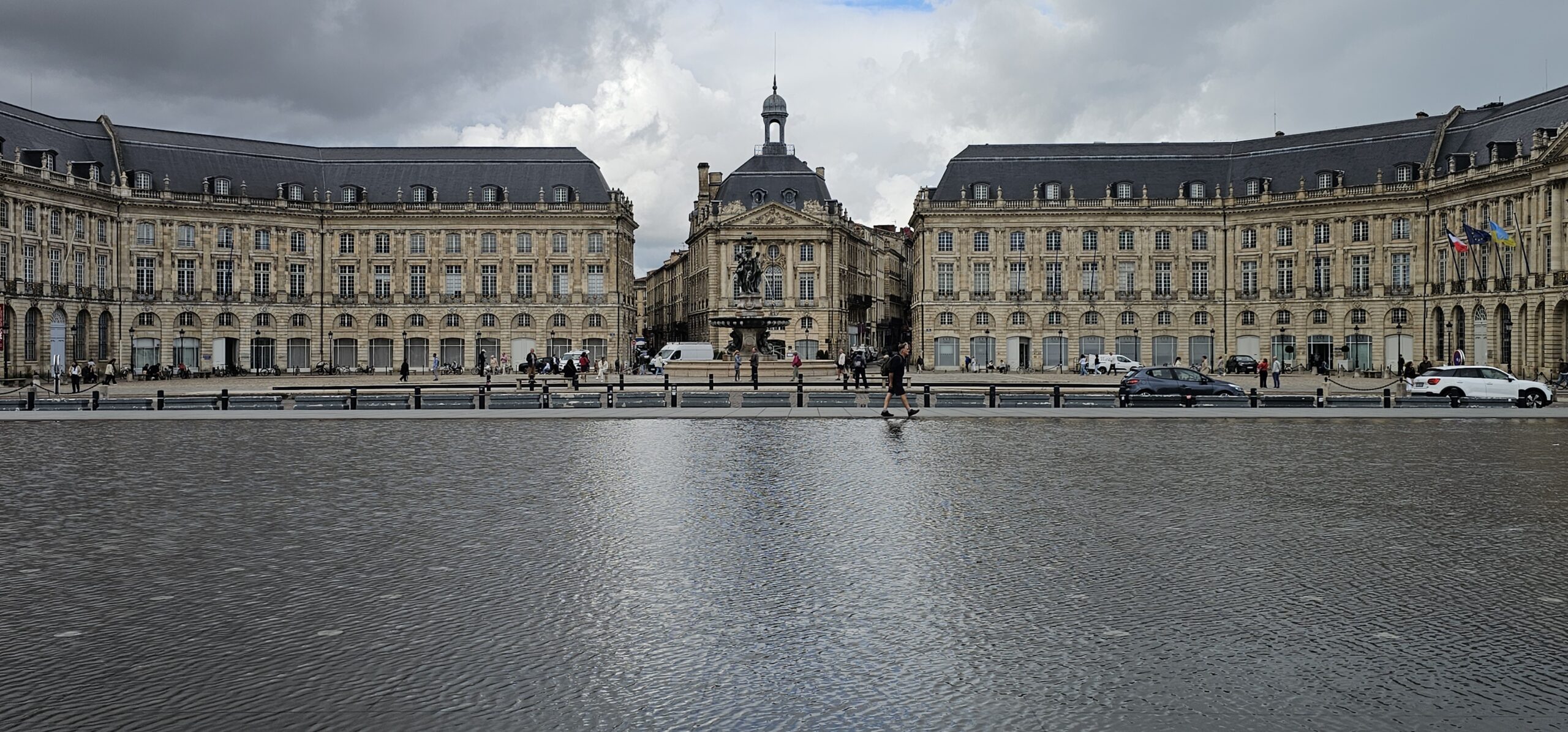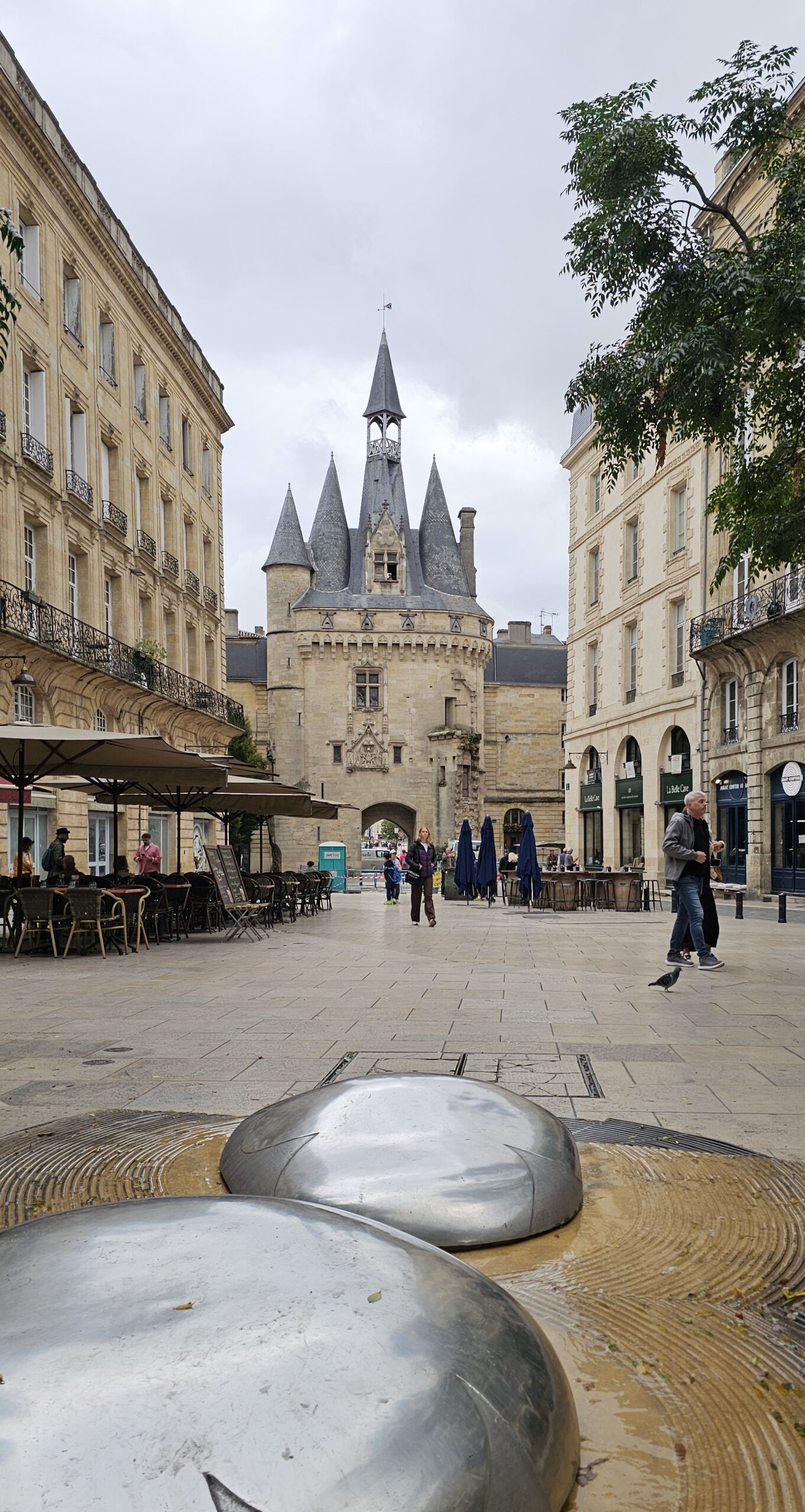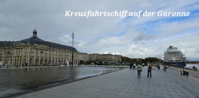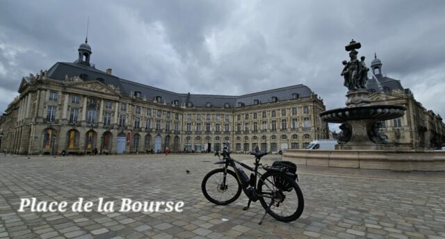 Frühtemperatur: 12°, Höchsttemperatur: 18°. Der Tag etwas außerhalb von Bordeaux am Chateau Du Garde mit Stellplatz beginnt mit Sonne. Heute fahre ich mit dem Bike nach Bordeaux, ca. 15 km. Die Stadt ist sehr schön, eine riesengroße Fußgängerzone mit vielen Cafés, schönen Plätzen und vielerlei historischen Bauten. Die Gironde ist hier noch ein breiter Fluss, auf der sogar ein britisches Kreuzfahrtschiff quasi bis ins Zentrum fahren konnte. Da ab 14 Uhr Regen angesagt ist, fahre ich um ca. 13 Uhr wieder zurück. Ein paar Minuten nach meiner Ankunft beginnt es leicht zu regnen – ein perfektes Timing.