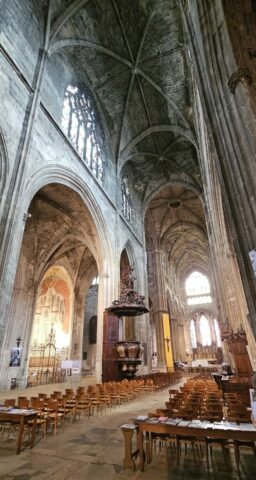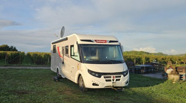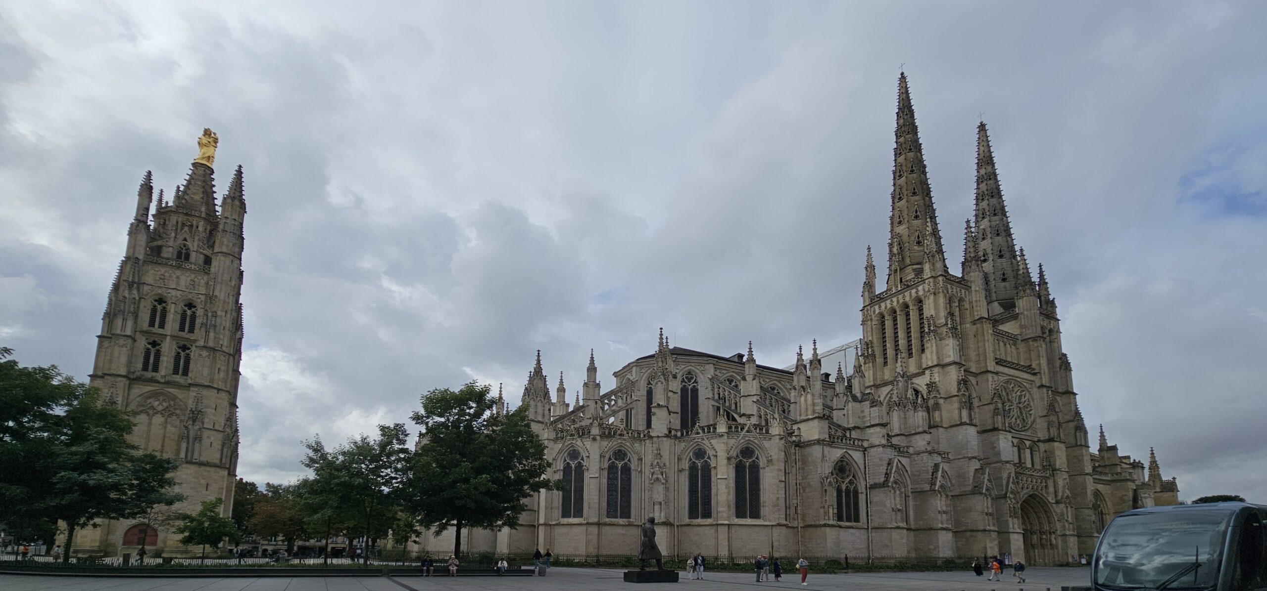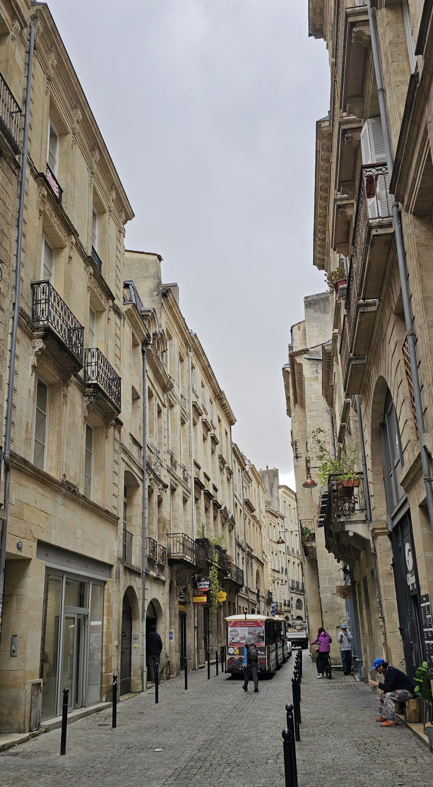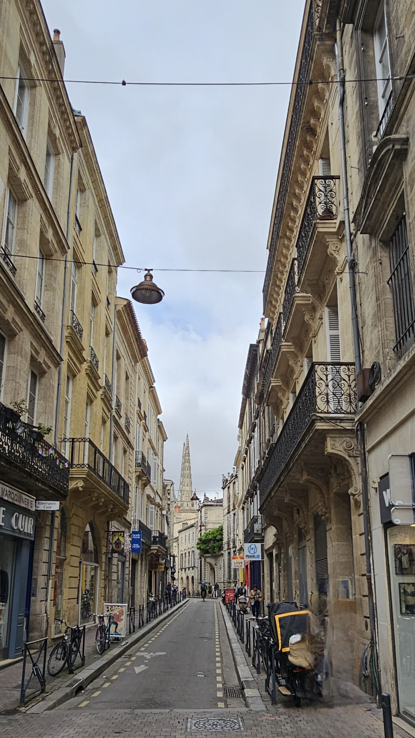 Frühtemperatur: 12°, Höchsttemperatur: 18°. Der Tag etwas außerhalb von Bordeaux am Chateau Du Garde mit Stellplatz beginnt mit Sonne. Heute fahre ich mit dem Bike nach Bordeaux, ca. 15 km. Die Stadt ist sehr schön, eine riesengroße Fußgängerzone mit vielen Cafés, schönen Plätzen und vielerlei historischen Bauten. Die Gironde ist hier noch ein breiter Fluss, auf der sogar ein britisches Kreuzfahrtschiff quasi bis ins Zentrum fahren konnte. Da ab 14 Uhr Regen angesagt ist, fahre ich um ca. 13 Uhr wieder zurück. Ein paar Minuten nach meiner Ankunft beginnt es leicht zu regnen – ein perfektes Timing.