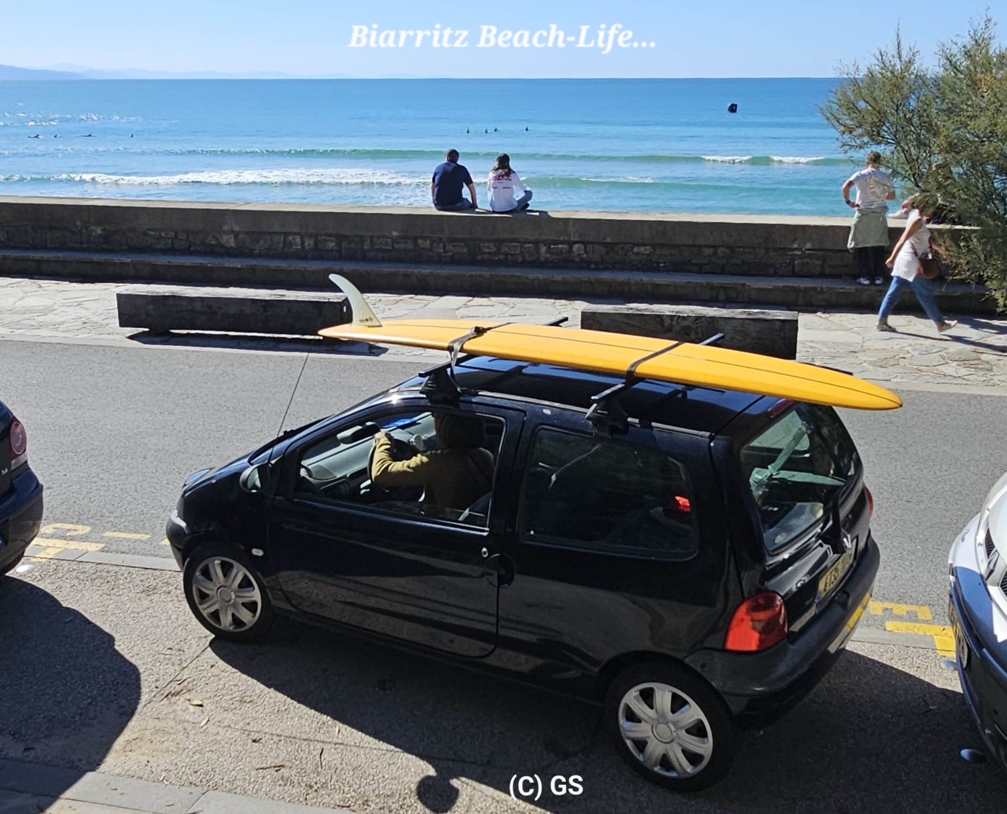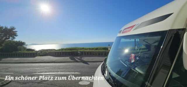 Am Horizont Richtung Süden kann man schon das Ende der Wolkendecke erkennen. Ich legen einen Zwischenstopp in Saint-Paul-lès-Dax ein, Grauwasser entleeren, Frischwasser bunkern und den Kühlschrank mit Lebensmitteln auffüllen. Schon bald bin ich in Biarritz und finde mit etwas Glück einen Stadtnahen Parkplatz.