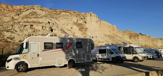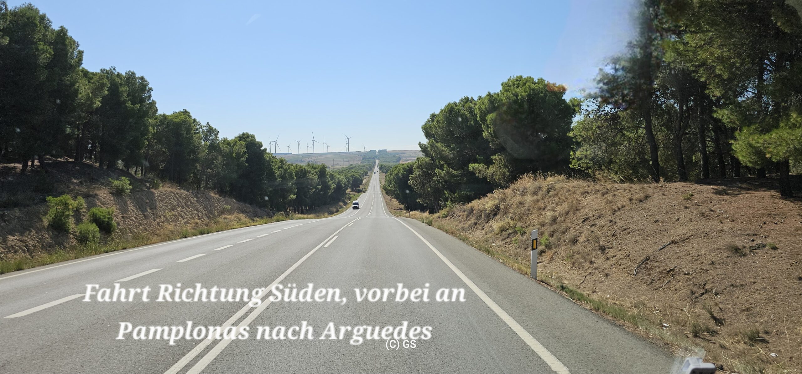 Abfahrt – weg von der überaus grünen Küste Richtung Süden. An Pamplona vorbei ist das Ziel in der Halbwüste Banderas Reales in Arguedas. Unterwegs Diesel auffüllen (€ 1,29) und eine leere spanische Gasflasche gegen eine Volle umtauschen (€ 10,57).