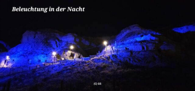 Ein warmer und wolkenloser Himmel lädt zum Sunset im Freien ein – mit einem Glas Wein. Die Felsen verfärben sich in der Abendsonne von orange bis rötlich und nach dem Sonnenuntergang werden diese für einige Zeit farbig beleuchtet. Wieder ein sehr schöner Tag und die Vorfreude auf morgen steigt….
