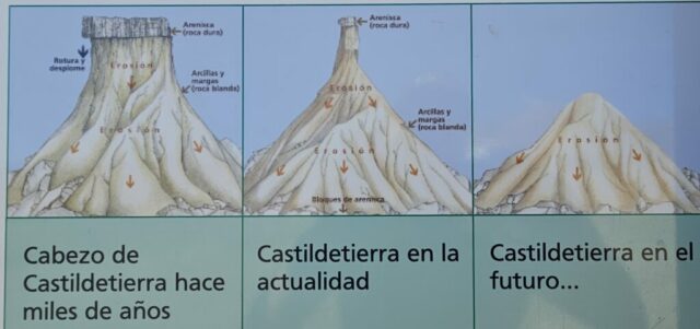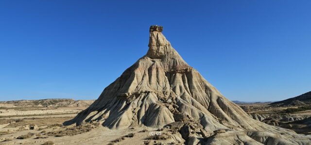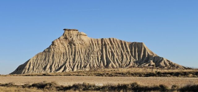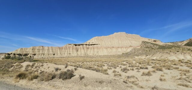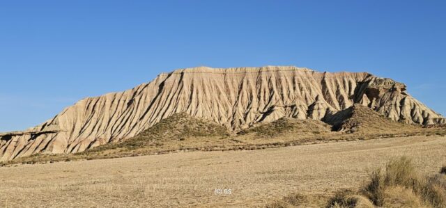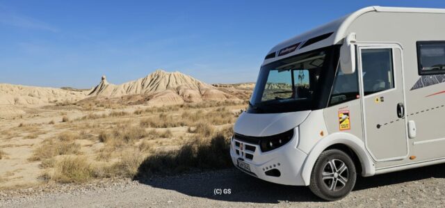 Nach dem Frühstück Abfahrt zum Informationszentrum der Bardenas Reales. Hier habe ich kostenlos eine Karte und diverse Informationen von einem Angestellten bekommen. Und dies alles gratis, auch kein Eintritt. Bardenas Reales ist eine Halbwüste im Süden der spanischen autonomen Gemeinschaft Navarra, die eine Fläche von 415 km² umfasst. Der größte Teil der Bardenas Reales ist seit 1999 als Naturpark geschützt. Im November 2000 wurden die Bardenas Reales von der UNESCO zum Biosphärenreservat erklärt. Mitten drinnen ist eine Militär-Luftwaffenbasis. Die Jets donnern manchmal im Tiefflug drüber und halten Schießübungen ab…. Schon viele Jahre hatte ich dieses Ziel im Hinterkopf – nur ist es Wirklichkeit geworden.