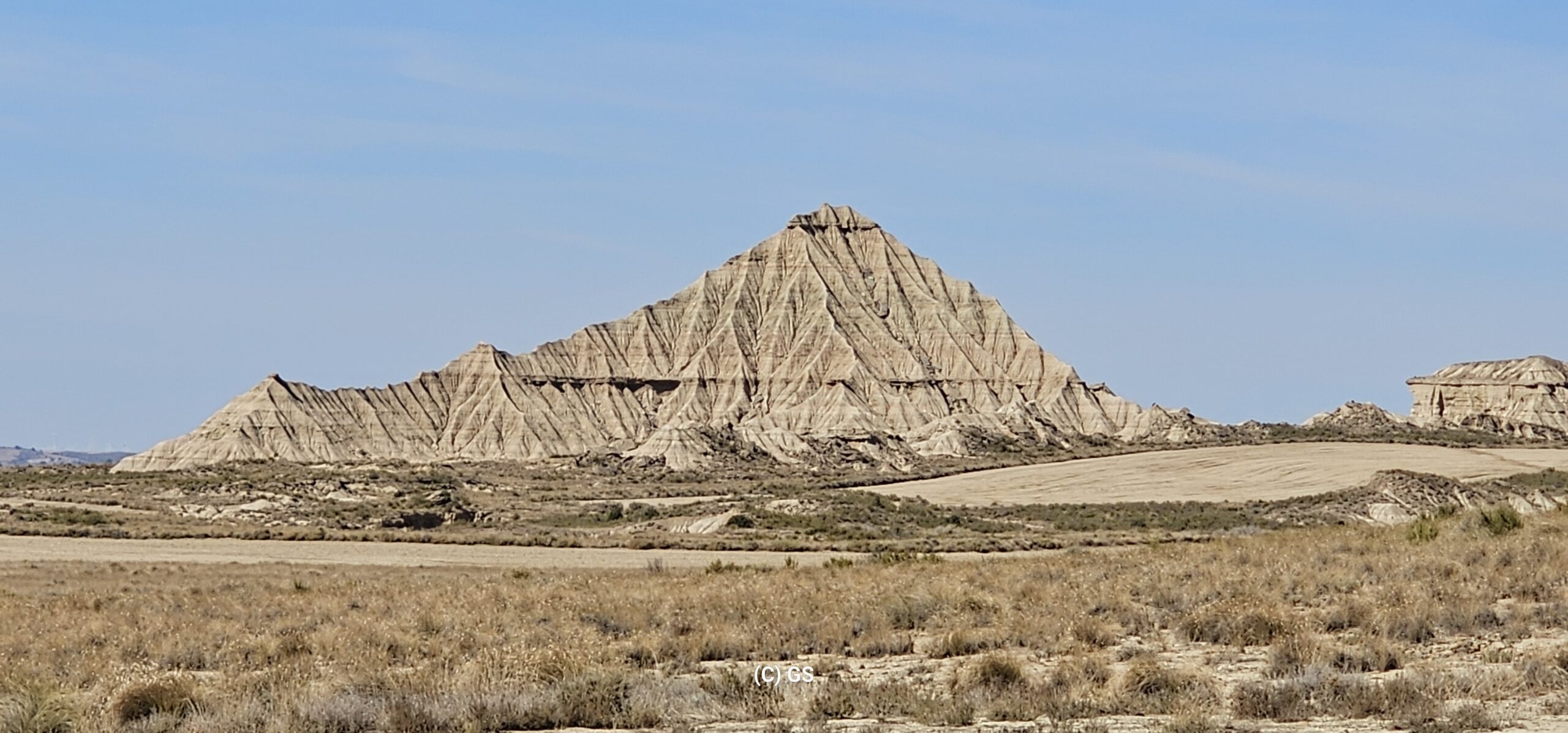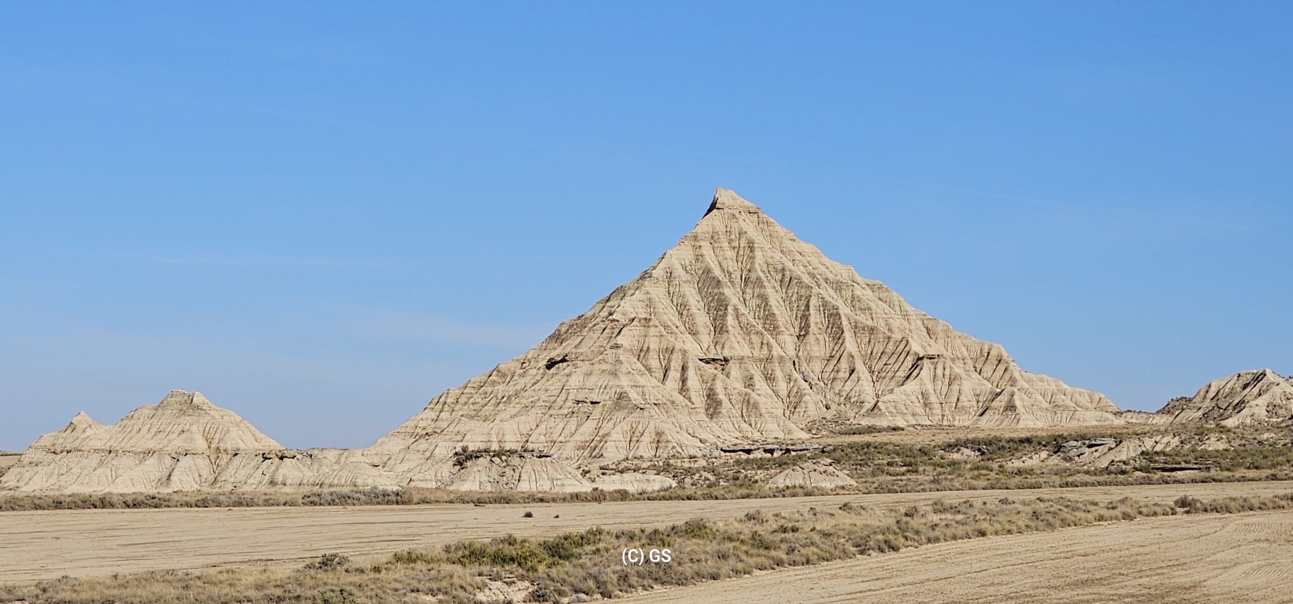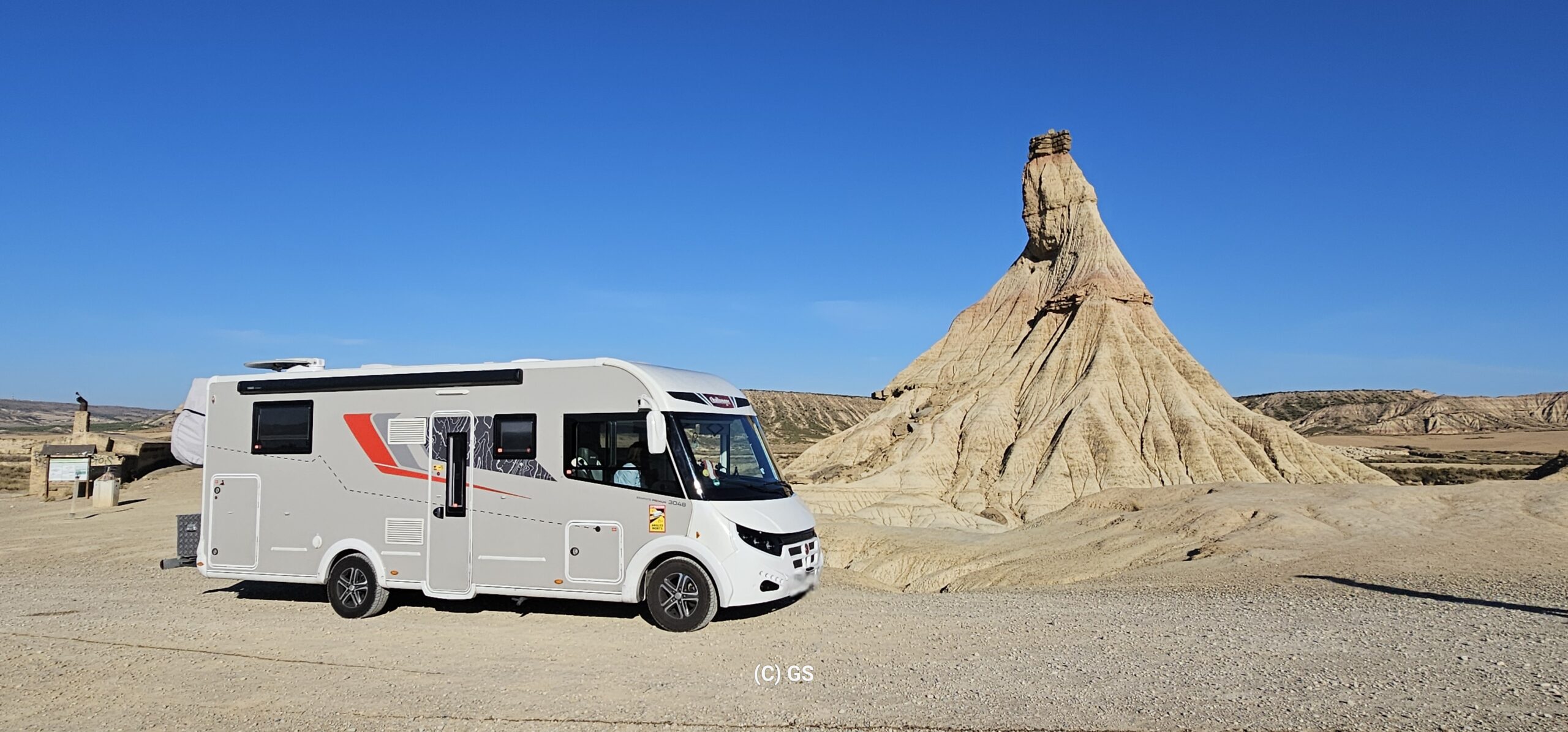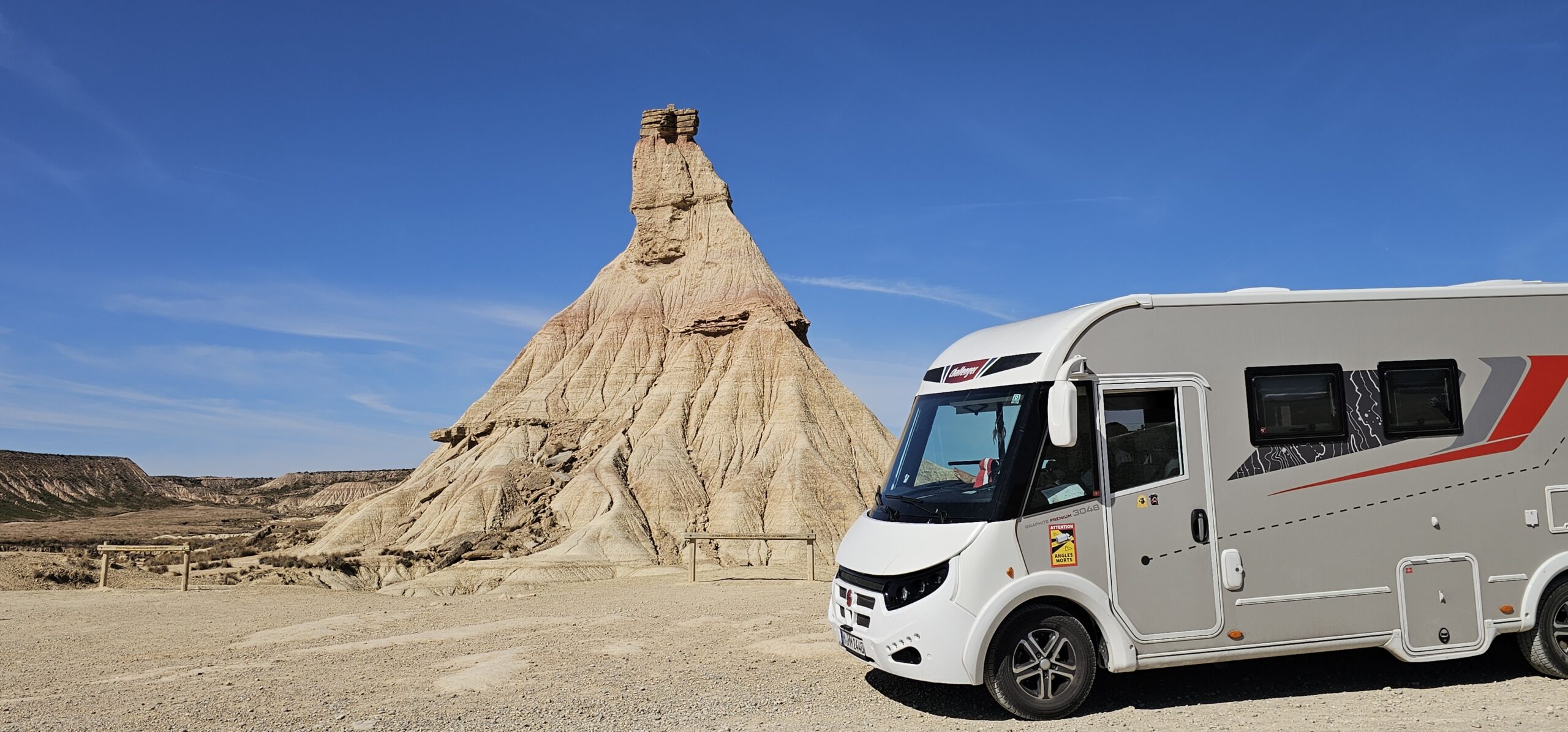 Nach dem Frühstück Abfahrt zum Informationszentrum der Bardenas Reales. Hier habe ich kostenlos eine Karte und diverse Informationen von einem Angestellten bekommen. Und dies alles gratis, auch kein Eintritt. Bardenas Reales ist eine Halbwüste im Süden der spanischen autonomen Gemeinschaft Navarra, die eine Fläche von 415 km² umfasst. Der größte Teil der Bardenas Reales ist seit 1999 als Naturpark geschützt. Im November 2000 wurden die Bardenas Reales von der UNESCO zum Biosphärenreservat erklärt. Mitten drinnen ist eine Militär-Luftwaffenbasis. Die Jets donnern manchmal im Tiefflug drüber und halten Schießübungen ab…. Schon viele Jahre hatte ich dieses Ziel im Hinterkopf – nur ist es Wirklichkeit geworden.