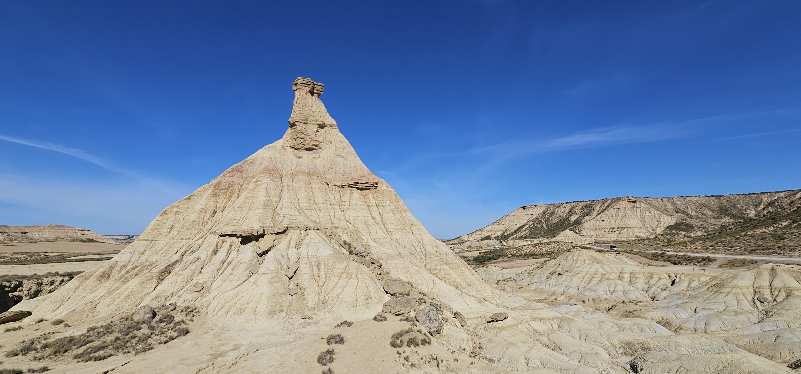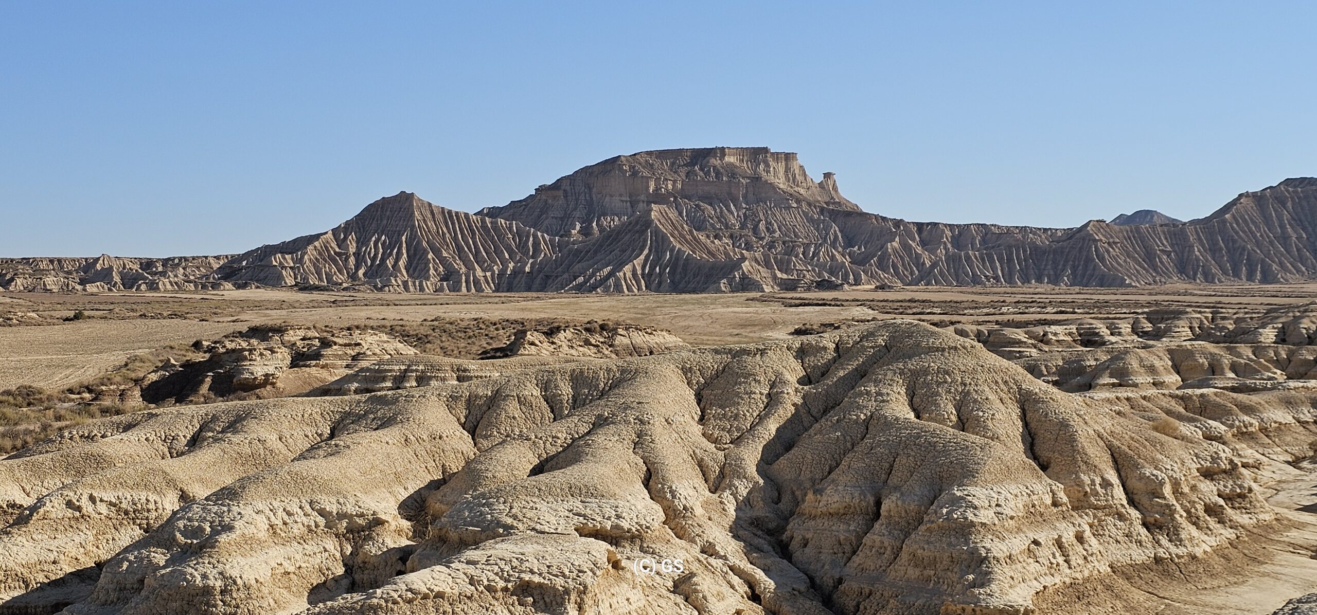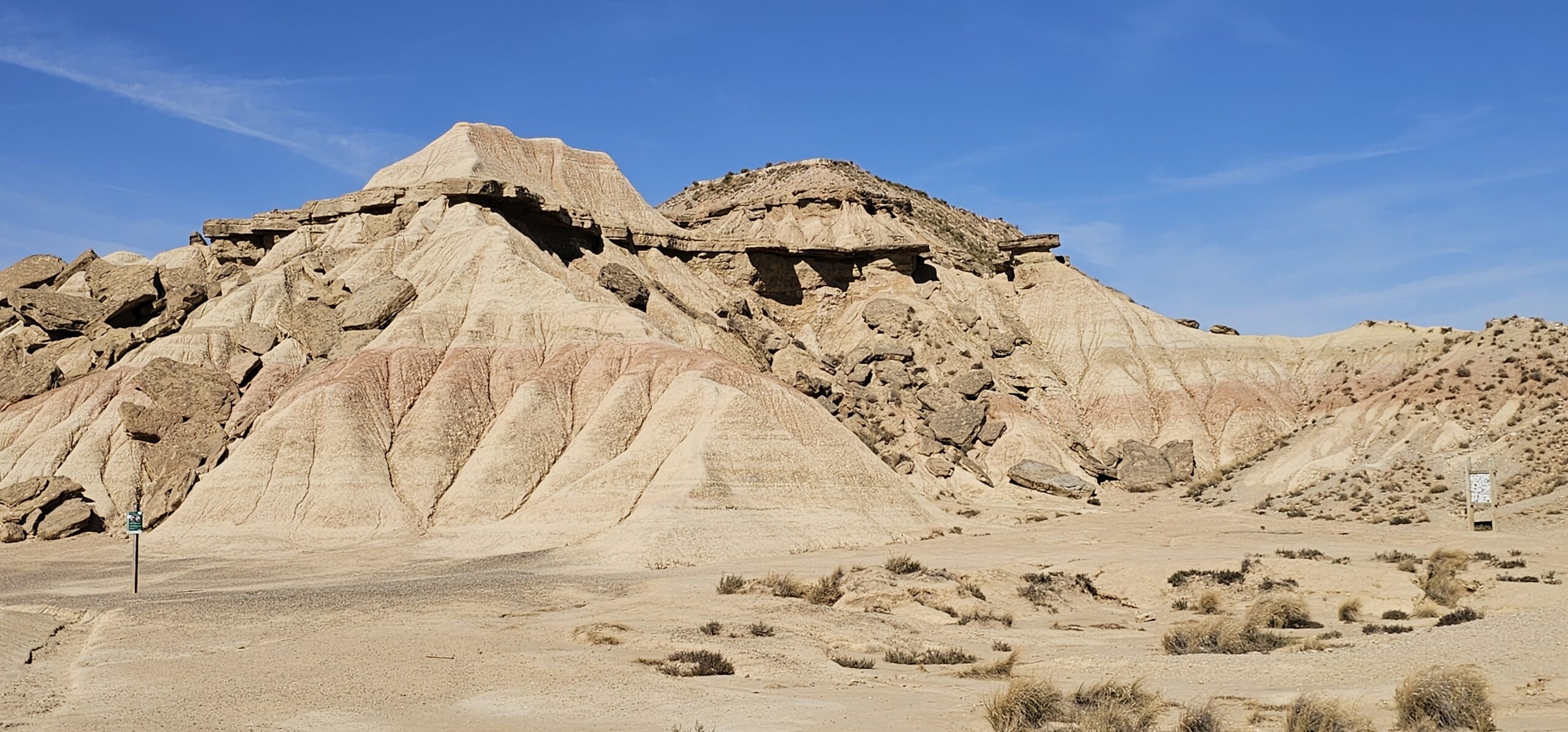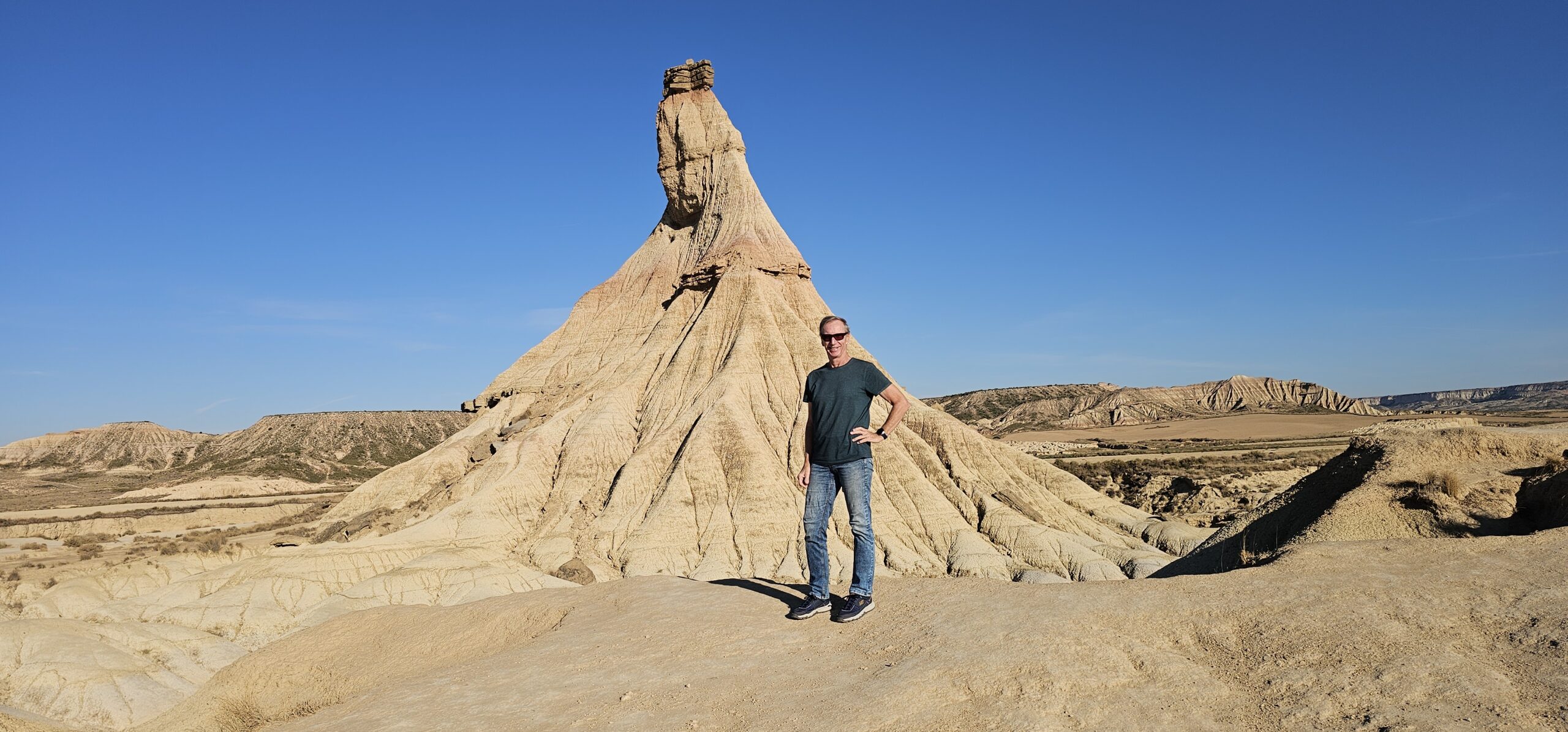 Nach dem Frühstück Abfahrt zum Informationszentrum der Bardenas Reales. Hier habe ich kostenlos eine Karte und diverse Informationen von einem Angestellten bekommen. Und dies alles gratis, auch kein Eintritt. Bardenas Reales ist eine Halbwüste im Süden der spanischen autonomen Gemeinschaft Navarra, die eine Fläche von 415 km² umfasst. Der größte Teil der Bardenas Reales ist seit 1999 als Naturpark geschützt. Im November 2000 wurden die Bardenas Reales von der UNESCO zum Biosphärenreservat erklärt. Mitten drinnen ist eine Militär-Luftwaffenbasis. Die Jets donnern manchmal im Tiefflug drüber und halten Schießübungen ab…. Schon viele Jahre hatte ich dieses Ziel im Hinterkopf – nur ist es Wirklichkeit geworden.