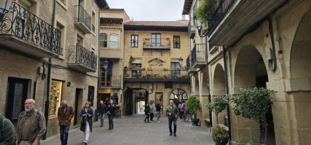 Ein Besuch in Dorf, in der Zwischenzeit ist es stark bewölkt. Ein Cappuccino und was Süßes wärmen auf. Zurück geht es meist abwärts und bald bin ich wieder in Elciego. Hier noch eine Runde zu einem Aussichtspunkt und das wars mehr oder weniger für heute. Überlegen und planen, wo es als nächstes hingehen soll…