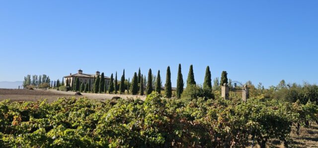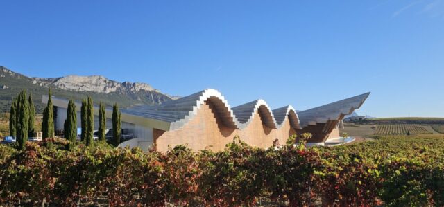 Kalt, nur 7°, aber wolkenlos beginnt der heutige Tag. Um 10 Uhr starte ich eine Bike-Tour, nochmals hinauf nach Laguardia zur Bodega Ysios – einfach schön anzusehen. Dann quer durch die Weinberge, Asphalt- und Schotterstraßen. Die Luft ist völlig klar und es hat eine schier endlose Weitsicht.