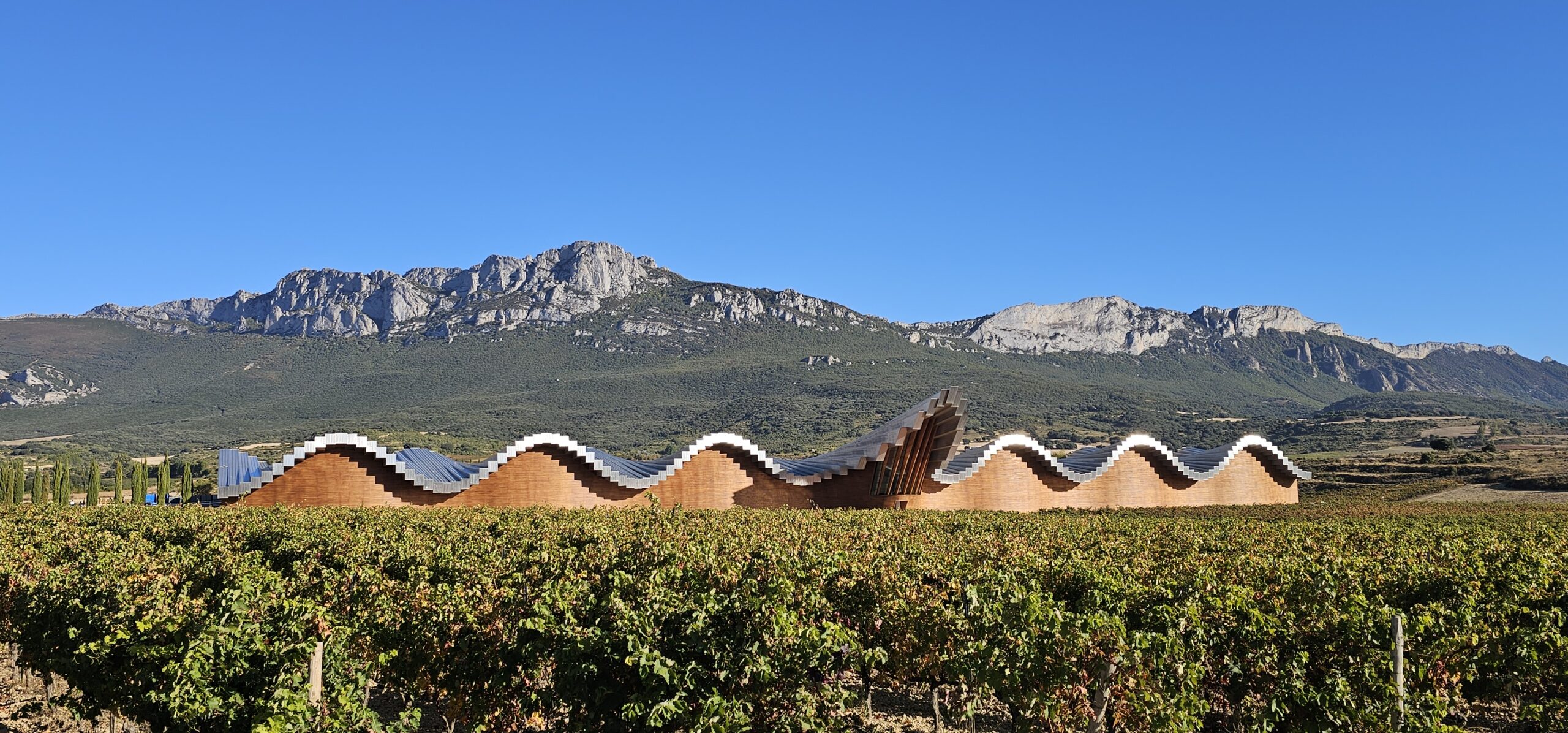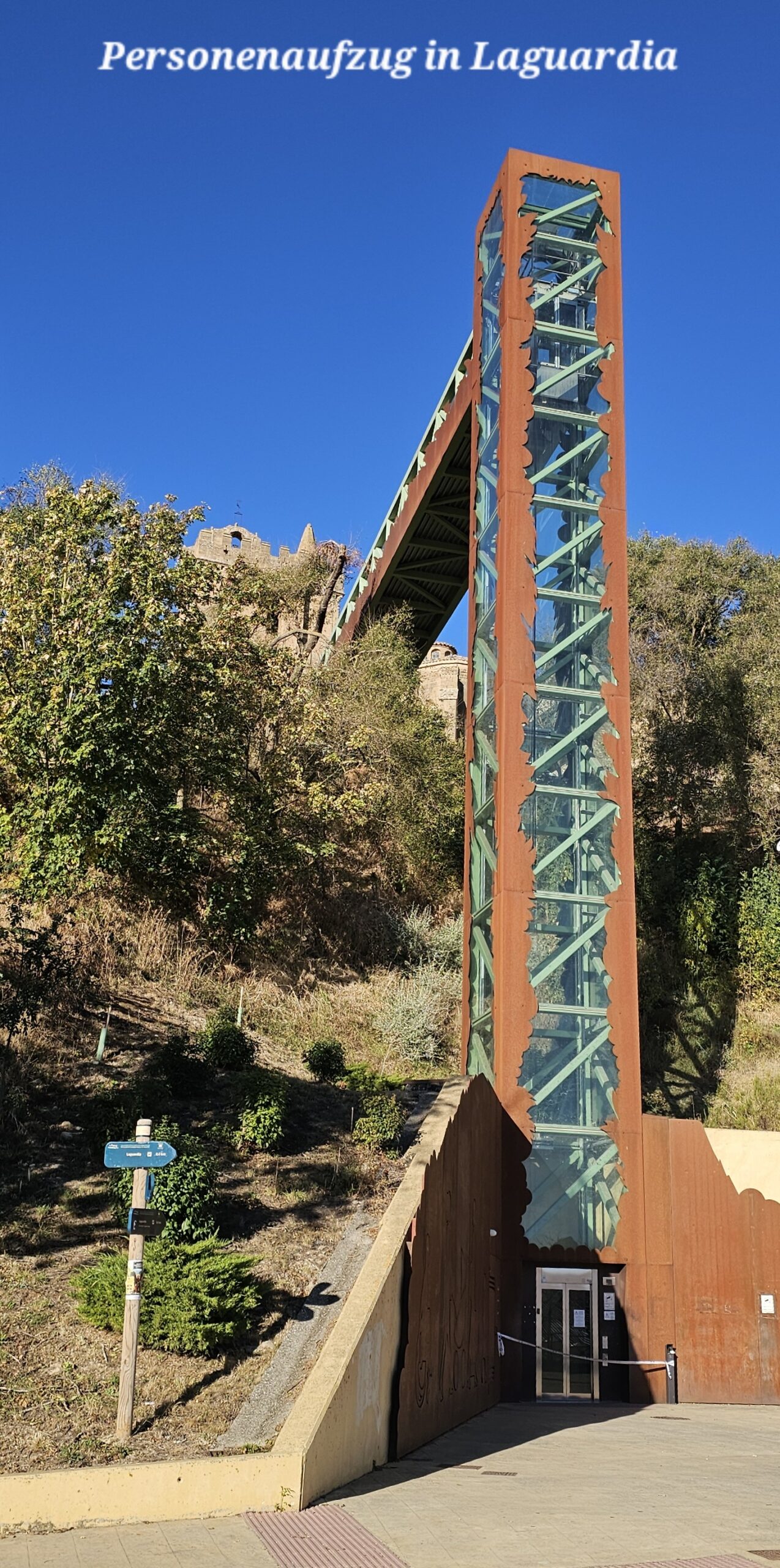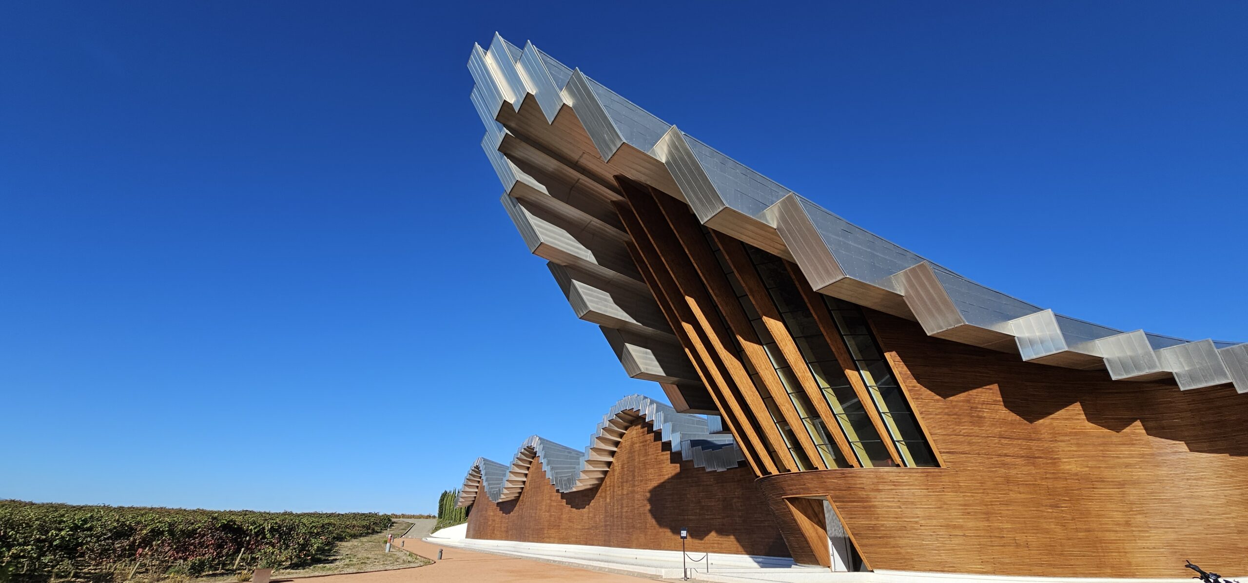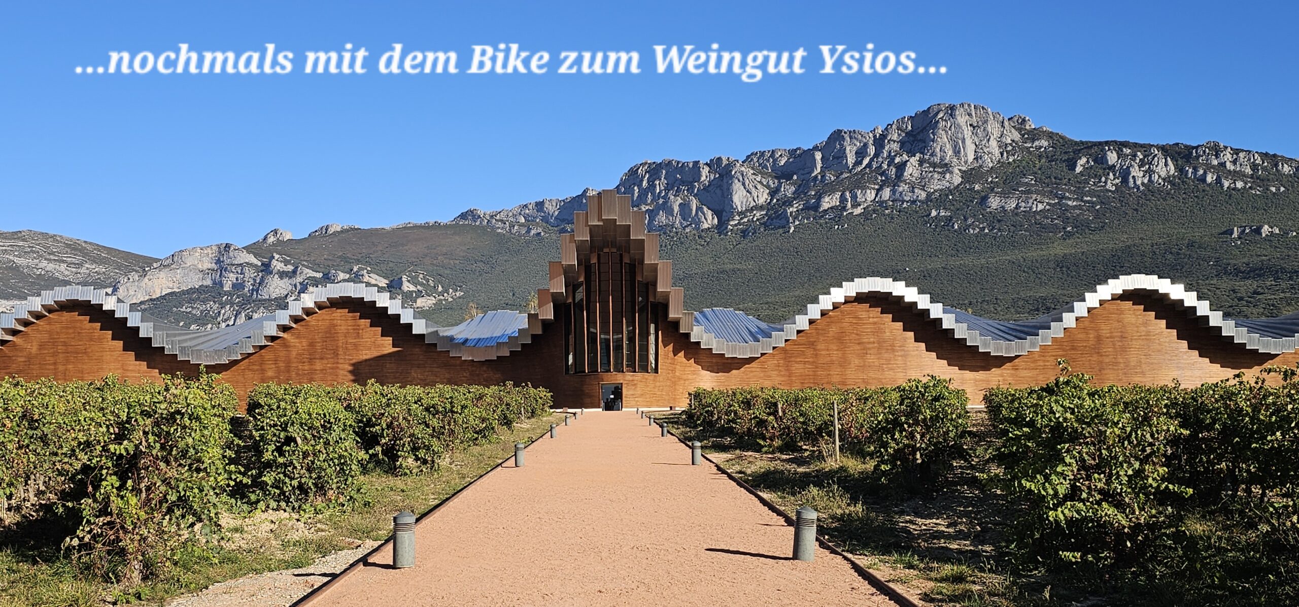 Kalt, nur 7°, aber wolkenlos beginnt der heutige Tag. Um 10 Uhr starte ich eine Bike-Tour, nochmals hinauf nach Laguardia zur Bodega Ysios – einfach schön anzusehen. Dann quer durch die Weinberge, Asphalt- und Schotterstraßen. Die Luft ist völlig klar und es hat eine schier endlose Weitsicht.