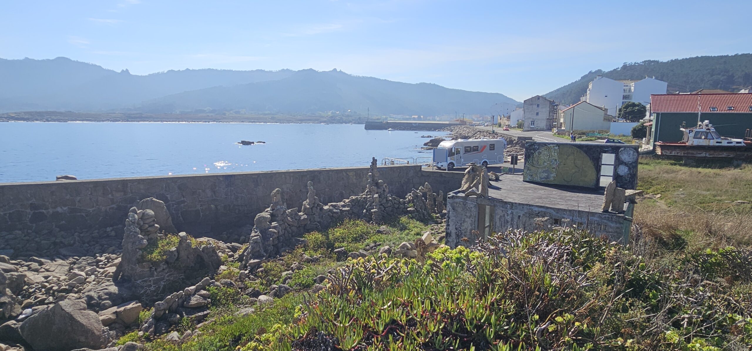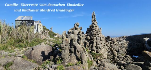 Es nicht in diesem Dorf viel zu sehen, Camelle ist nur ein kleines verschlafenes Fischerdorf. Aber – hier lebte und werkte Manfred Gnädinger, ein aus Radolfzell am Bodensee stammender Einsiedler und Künstler (https://de.wikipedia.org/wiki/Manfred_Gn%C3%A4dinger, oder https://www.caminodosfaros.com/de/museum-von-man/).