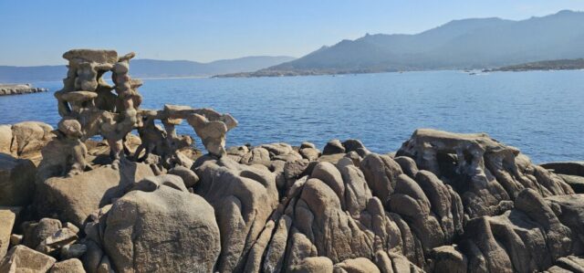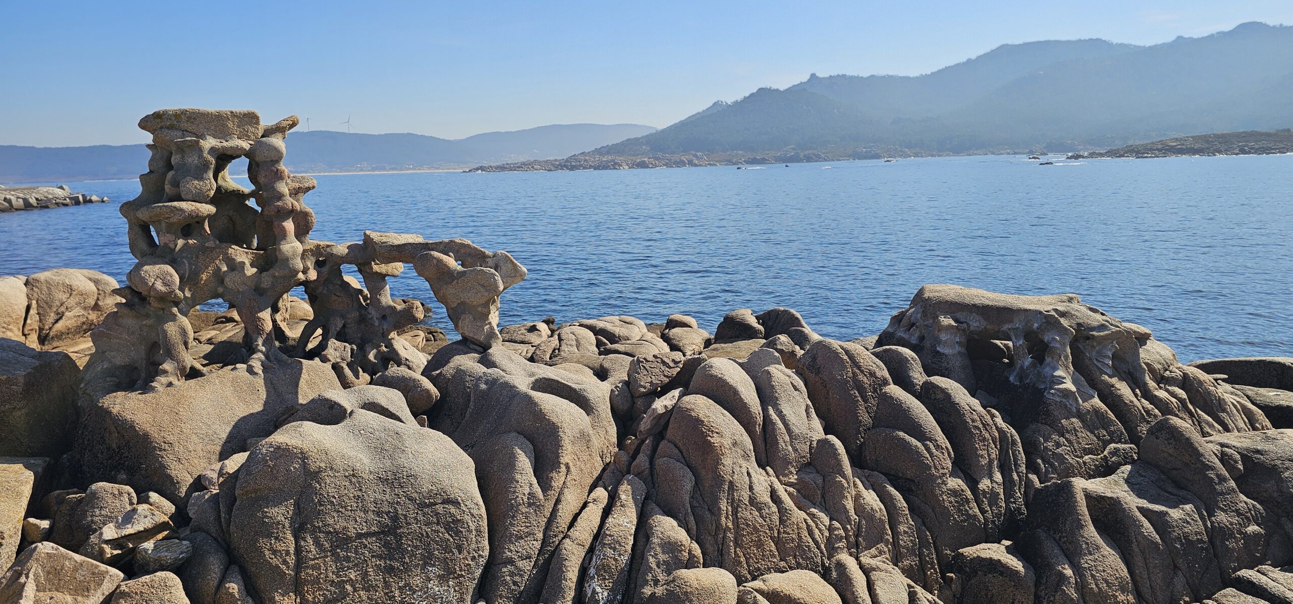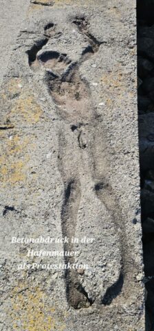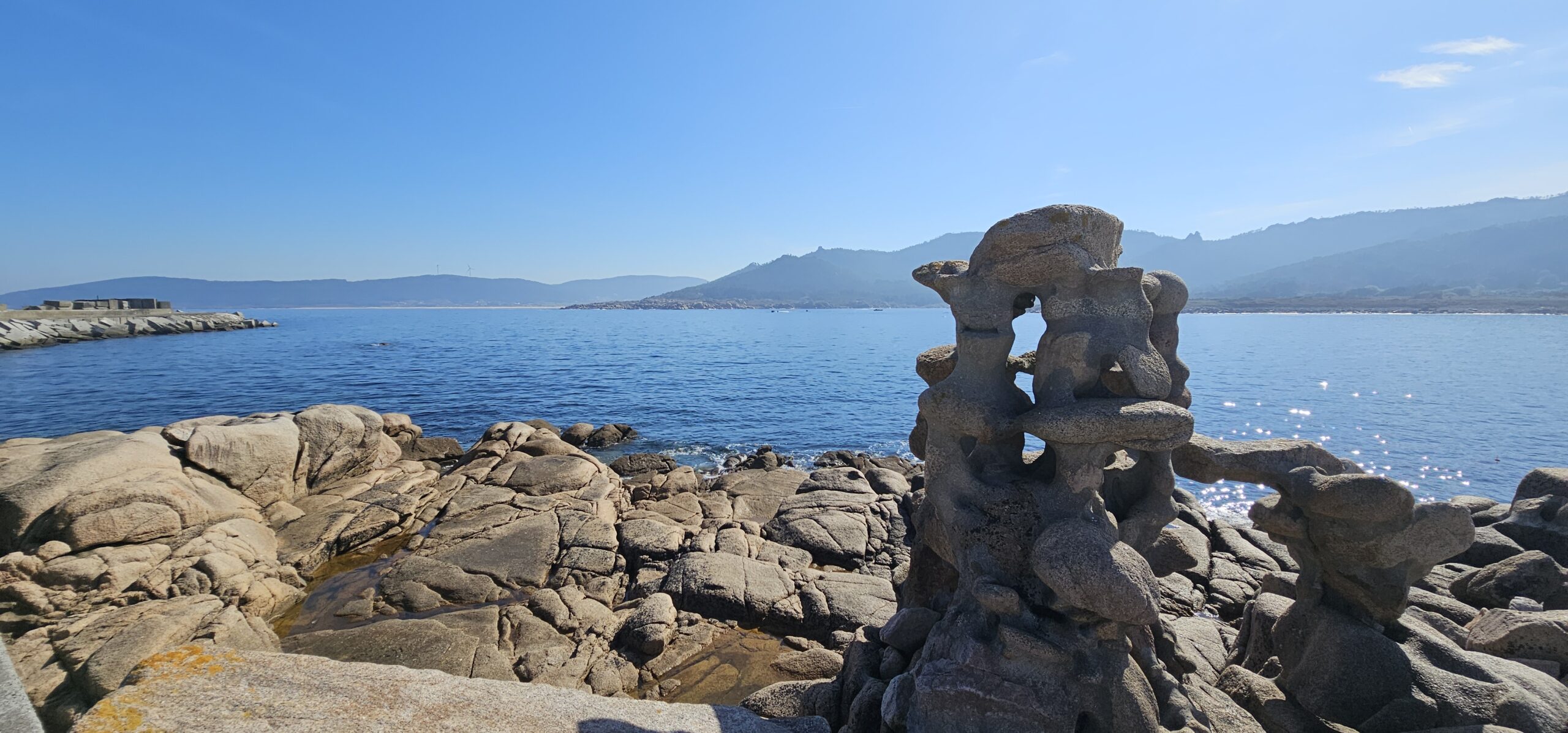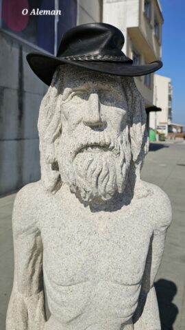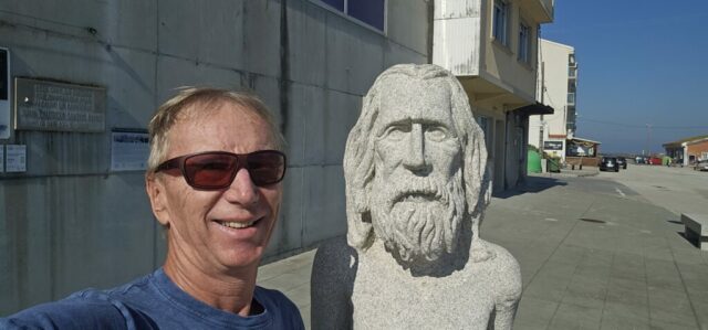 Wen es interessiert, kann seine Geschichte im Internet nachlesen. Ich schaute mir sein ehemaliges Haus und einige Skulpturen am Strand an. Das Museum hat leider erst morgen wieder offen. Hier verursachte der Tanker Prestige 2002 eine große Ölpest, die auch diesen Strand erreichte. In der Hafenmauer hat er sich aus Protest in den noch weichen Beton gelegt – die Abdrücke sind noch nach wie vor zu sehen.