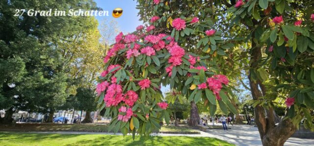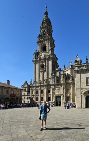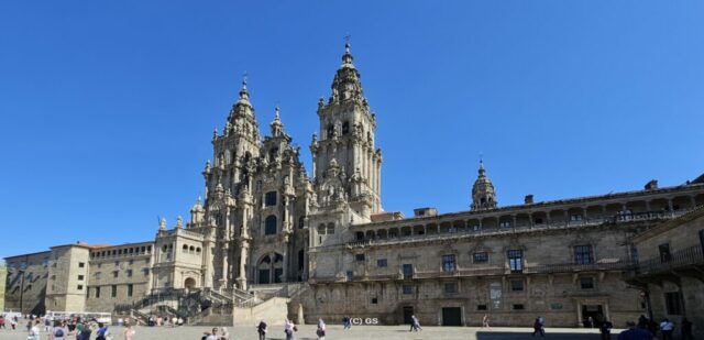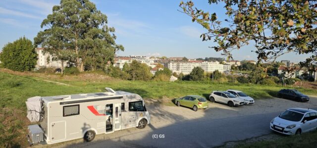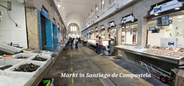 Wiederum ein herrlich schöner Morgen. Nachdem es in Camelle keine Bäckerei gibt, fahre ich um ca. 9 Uhr los. In der nächsten Ortschaft finde ich ein nettes Cafe und nehme dort mein Frühstück ein. Dann fahre ich weiter nach Santiago de Compostela auf einen Bus- und Wohnmobilparkplatz. Hier steht ein Reisebus von Felder-Reisen in Mellau. Ein kurzer Small-Talk mit dem Fahrer, dann gehe ich zu nahegelegenen Busstation. Um 1 Euro fahre ich bis an den Rand der Altstadt und komme als Erstes zu den Markthallen. Hier gibt es alle möglichen Lebensmittel – Fisch, Fleisch und Gemüse etc. Daneben zahlreiche Wein- und Tapa-Bars. Schon bald bin ich bei der Kathedrale von Santiago – hier sind sehr viele Pilger welche den langen und beschwerlichen Weg geschafft haben. Danach eine kleine Stärkung und weiter geht es in einen Park. Auf einem Aussichtspunkt gibt es einen sehr schönen Blick auf die Kathedrale. Ich schlendere durch die Stadt zurück und nachdem ich wieder am Parkplatz bin, erledige ich in einer neben dem Parkplatz befindlichen Reinigung die Wäsche. Danach fahre ich zu einem ruhigeren Stellplatz und verbringe dort die Nacht.