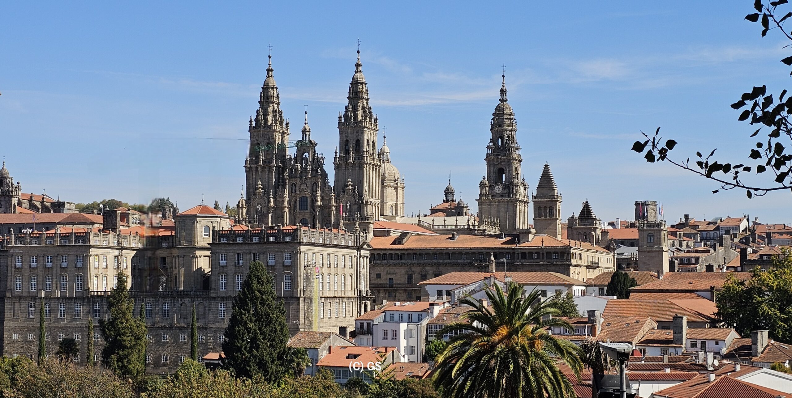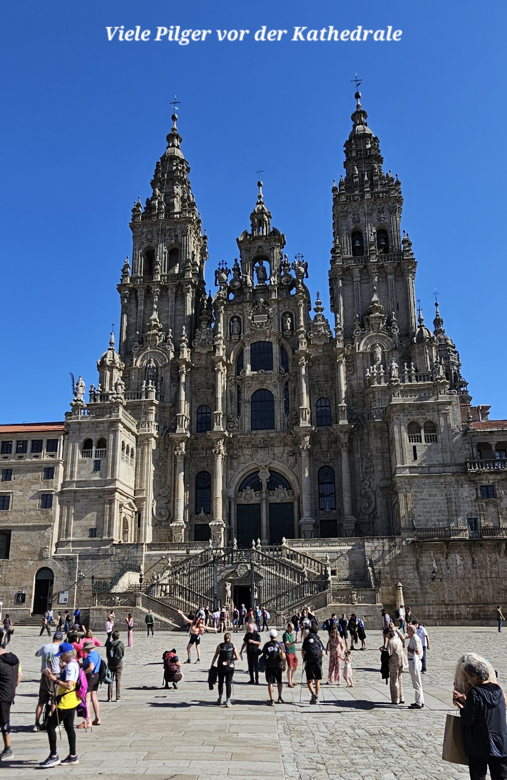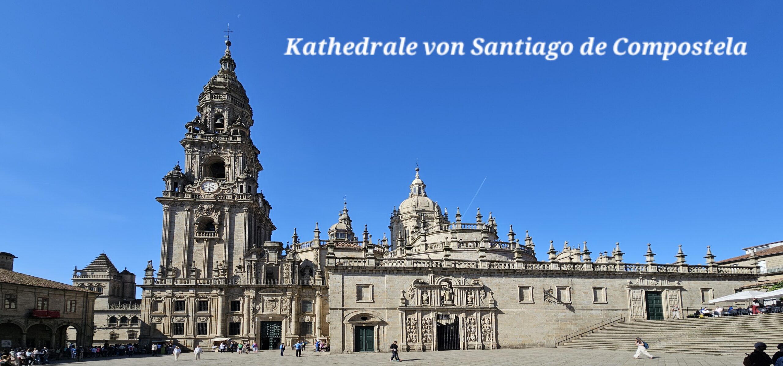 Wiederum ein herrlich schöner Morgen. Nachdem es in Camelle keine Bäckerei gibt, fahre ich um ca. 9 Uhr los. In der nächsten Ortschaft finde ich ein nettes Cafe und nehme dort mein Frühstück ein. Dann fahre ich weiter nach Santiago de Compostela auf einen Bus- und Wohnmobilparkplatz. Hier steht ein Reisebus von Felder-Reisen in Mellau. Ein kurzer Small-Talk mit dem Fahrer, dann gehe ich zu nahegelegenen Busstation. Um 1 Euro fahre ich bis an den Rand der Altstadt und komme als Erstes zu den Markthallen. Hier gibt es alle möglichen Lebensmittel – Fisch, Fleisch und Gemüse etc. Daneben zahlreiche Wein- und Tapa-Bars. Schon bald bin ich bei der Kathedrale von Santiago – hier sind sehr viele Pilger welche den langen und beschwerlichen Weg geschafft haben. Danach eine kleine Stärkung und weiter geht es in einen Park. Auf einem Aussichtspunkt gibt es einen sehr schönen Blick auf die Kathedrale. Ich schlendere durch die Stadt zurück und nachdem ich wieder am Parkplatz bin, erledige ich in einer neben dem Parkplatz befindlichen Reinigung die Wäsche. Danach fahre ich zu einem ruhigeren Stellplatz und verbringe dort die Nacht.