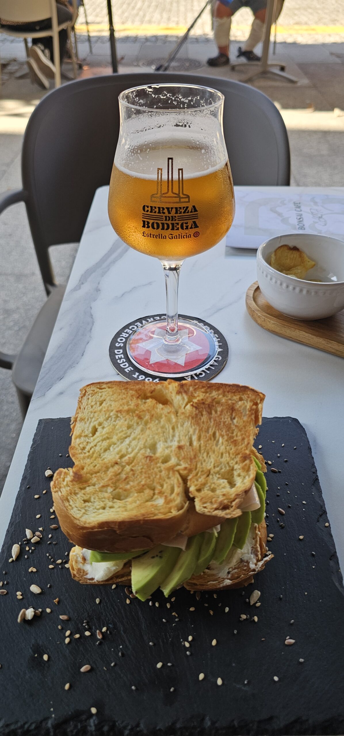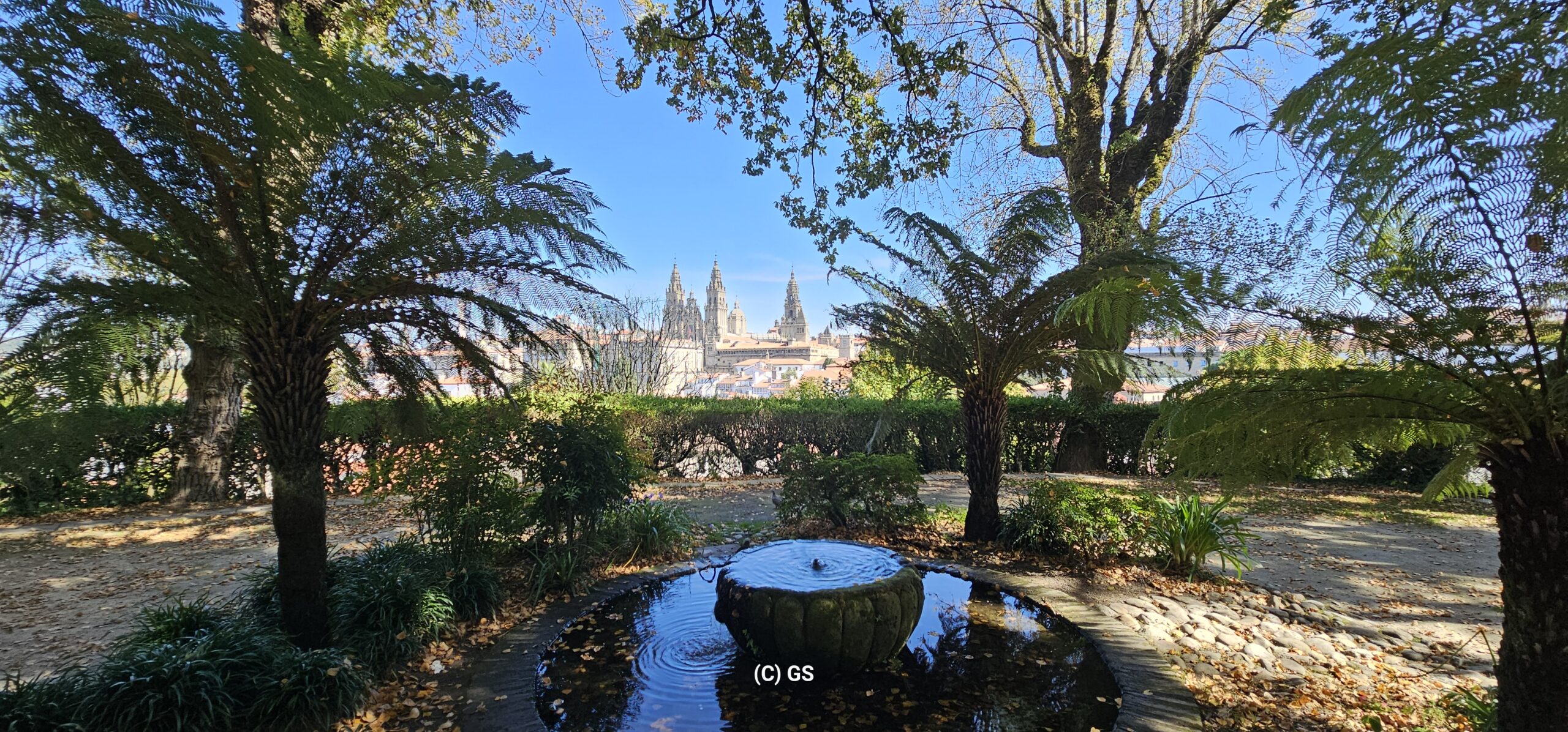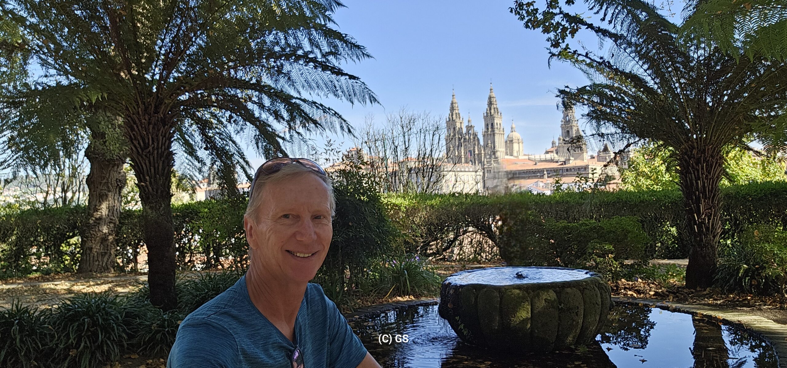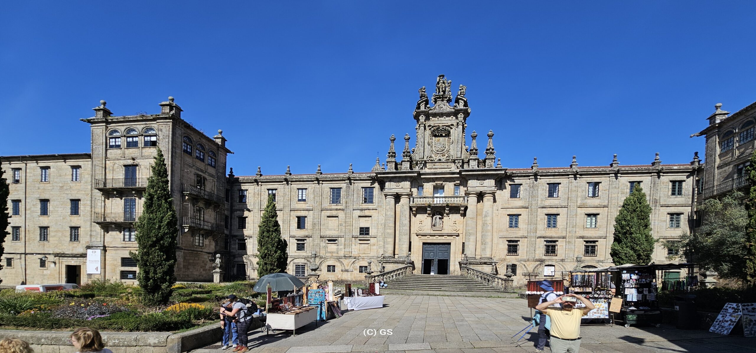 Wiederum ein herrlich schöner Morgen. Nachdem es in Camelle keine Bäckerei gibt, fahre ich um ca. 9 Uhr los. In der nächsten Ortschaft finde ich ein nettes Cafe und nehme dort mein Frühstück ein. Dann fahre ich weiter nach Santiago de Compostela auf einen Bus- und Wohnmobilparkplatz. Hier steht ein Reisebus von Felder-Reisen in Mellau. Ein kurzer Small-Talk mit dem Fahrer, dann gehe ich zu nahegelegenen Busstation. Um 1 Euro fahre ich bis an den Rand der Altstadt und komme als Erstes zu den Markthallen. Hier gibt es alle möglichen Lebensmittel – Fisch, Fleisch und Gemüse etc. Daneben zahlreiche Wein- und Tapa-Bars. Schon bald bin ich bei der Kathedrale von Santiago – hier sind sehr viele Pilger welche den langen und beschwerlichen Weg geschafft haben. Danach eine kleine Stärkung und weiter geht es in einen Park. Auf einem Aussichtspunkt gibt es einen sehr schönen Blick auf die Kathedrale. Ich schlendere durch die Stadt zurück und nachdem ich wieder am Parkplatz bin, erledige ich in einer neben dem Parkplatz befindlichen Reinigung die Wäsche. Danach fahre ich zu einem ruhigeren Stellplatz und verbringe dort die Nacht.