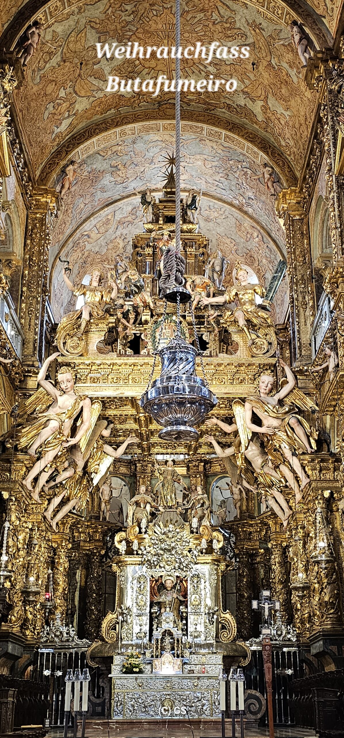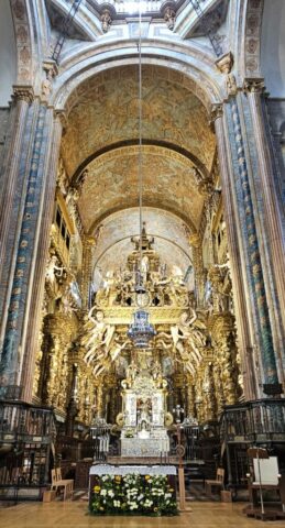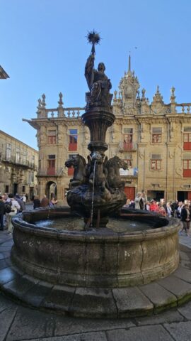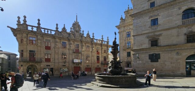 Noch einmal habe ich mir das beeindruckende Santiago de Compostela angeschaut. In gut 20 Minuten zu Fuß war ich in der Altstadt. Wo es gestern am frühen Nachmittag eine lange Warteschlange für die Besichtigung der Kathedrale gab, betrug die Wartezeit heute nur 2 – 3 Minuten. Das Innere ist sehr pompös und im Mittelpunkt stehen das von der Decke hängende Weihrauchfass Butafumeiro und die angebliche Grabstätte vom Heiligen Jakobus.