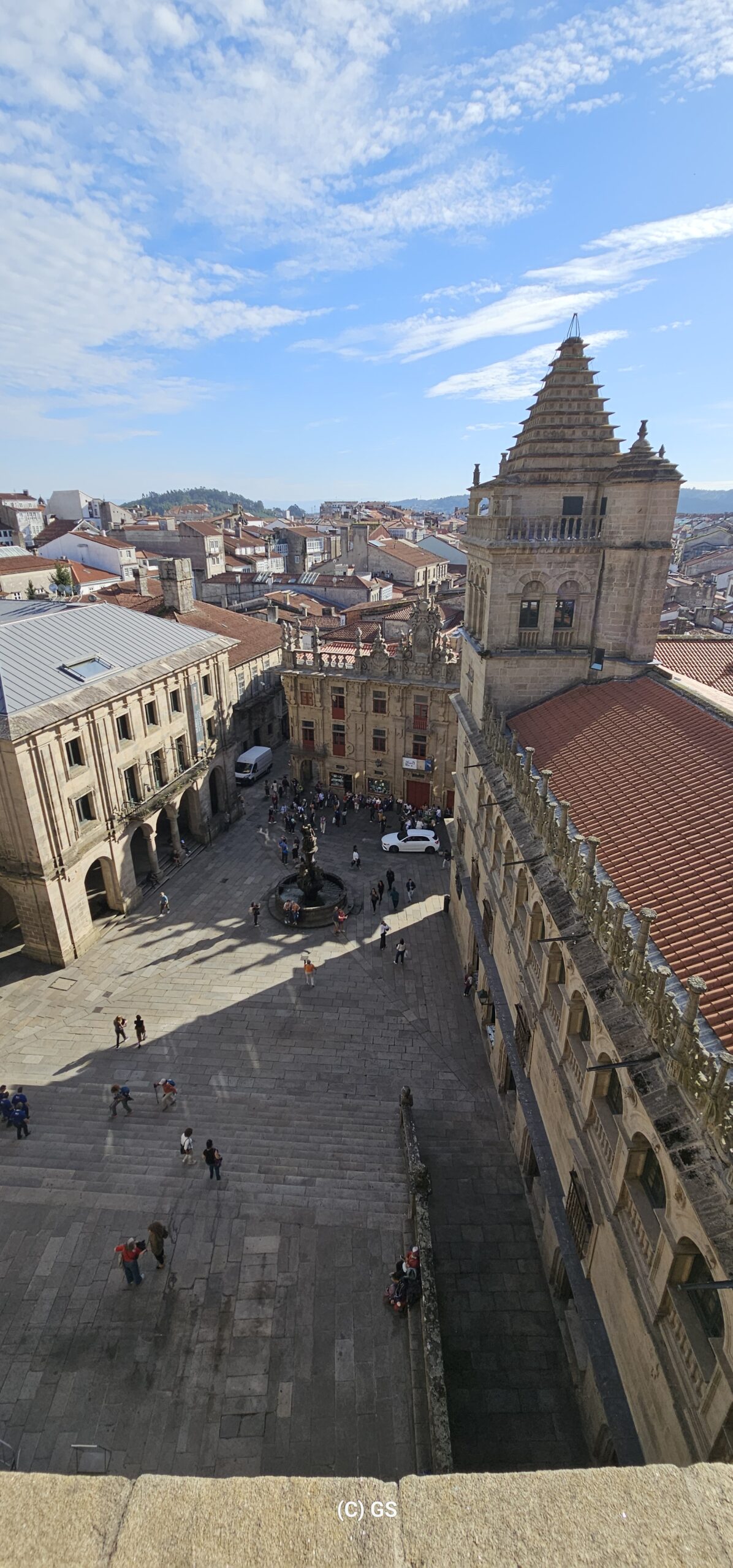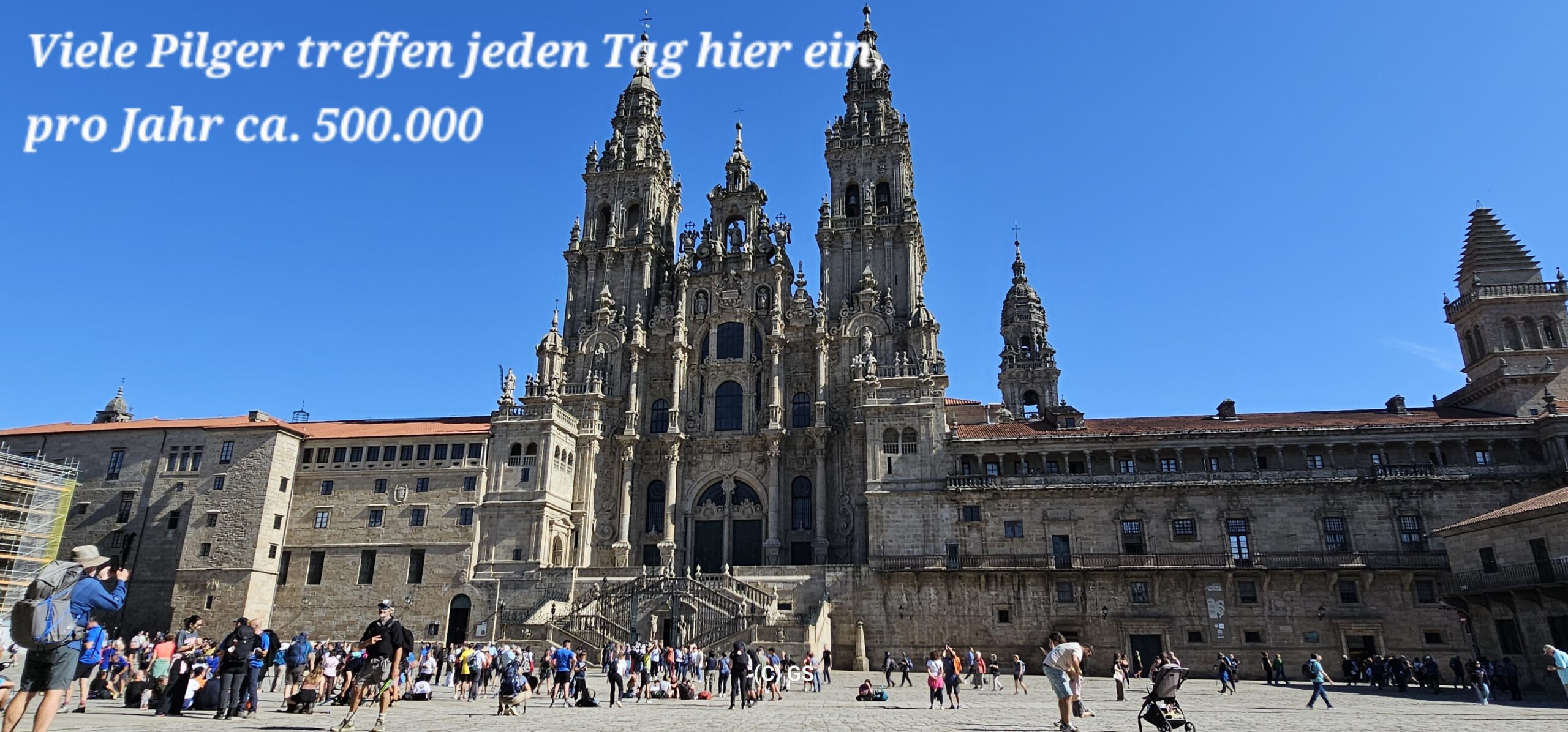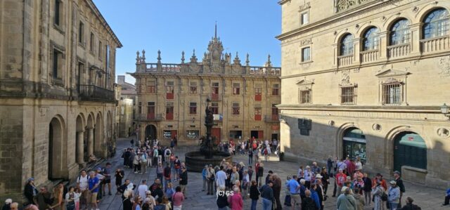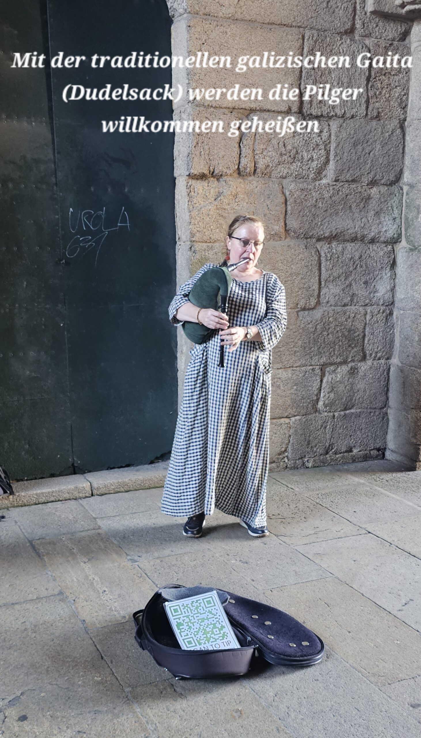 Zurück zum großen Platz vor der Kathedrale, den Tönen der galizischen Gaita (Dudelsack) folgend, welche seit Urzeiten die Pilger willkommen heißt, beobachtete ich das bunte Treiben. Viele emotionale, freudige, erschöpfte und nachdenkliche Gesichter der Pilger waren hier zu sehen. Aber auch unzählige Gruppen, welche mit Bussen herangekarrt wurden.
