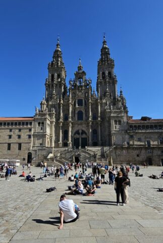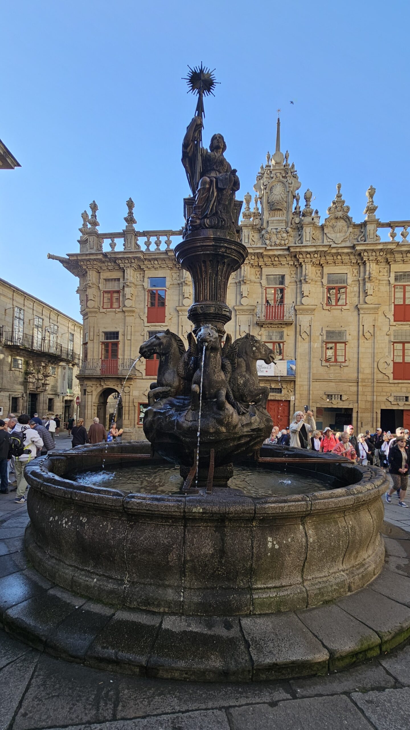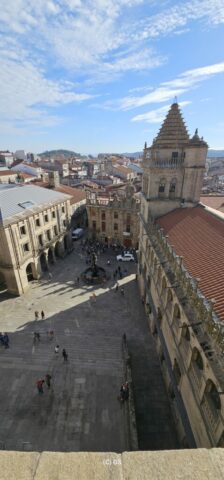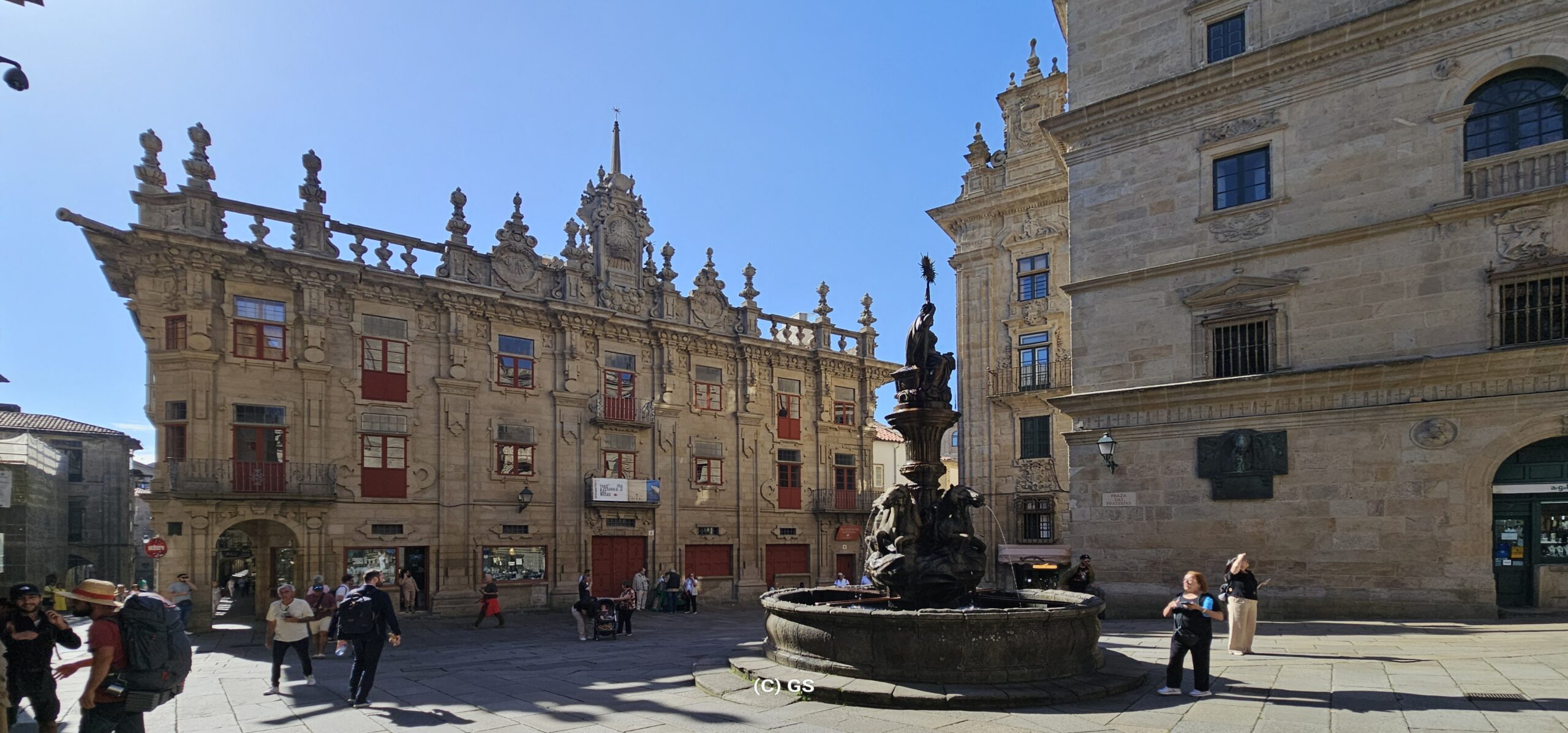 Zurück zum großen Platz vor der Kathedrale, den Tönen der galizischen Gaita (Dudelsack) folgend, welche seit Urzeiten die Pilger willkommen heißt, beobachtete ich das bunte Treiben. Viele emotionale, freudige, erschöpfte und nachdenkliche Gesichter der Pilger waren hier zu sehen. Aber auch unzählige Gruppen, welche mit Bussen herangekarrt wurden.