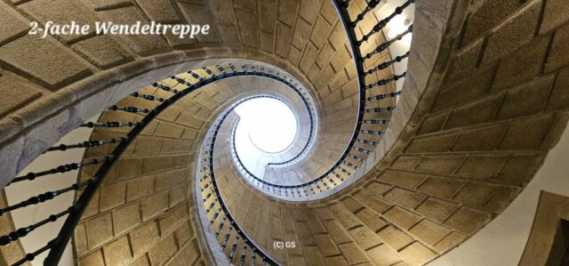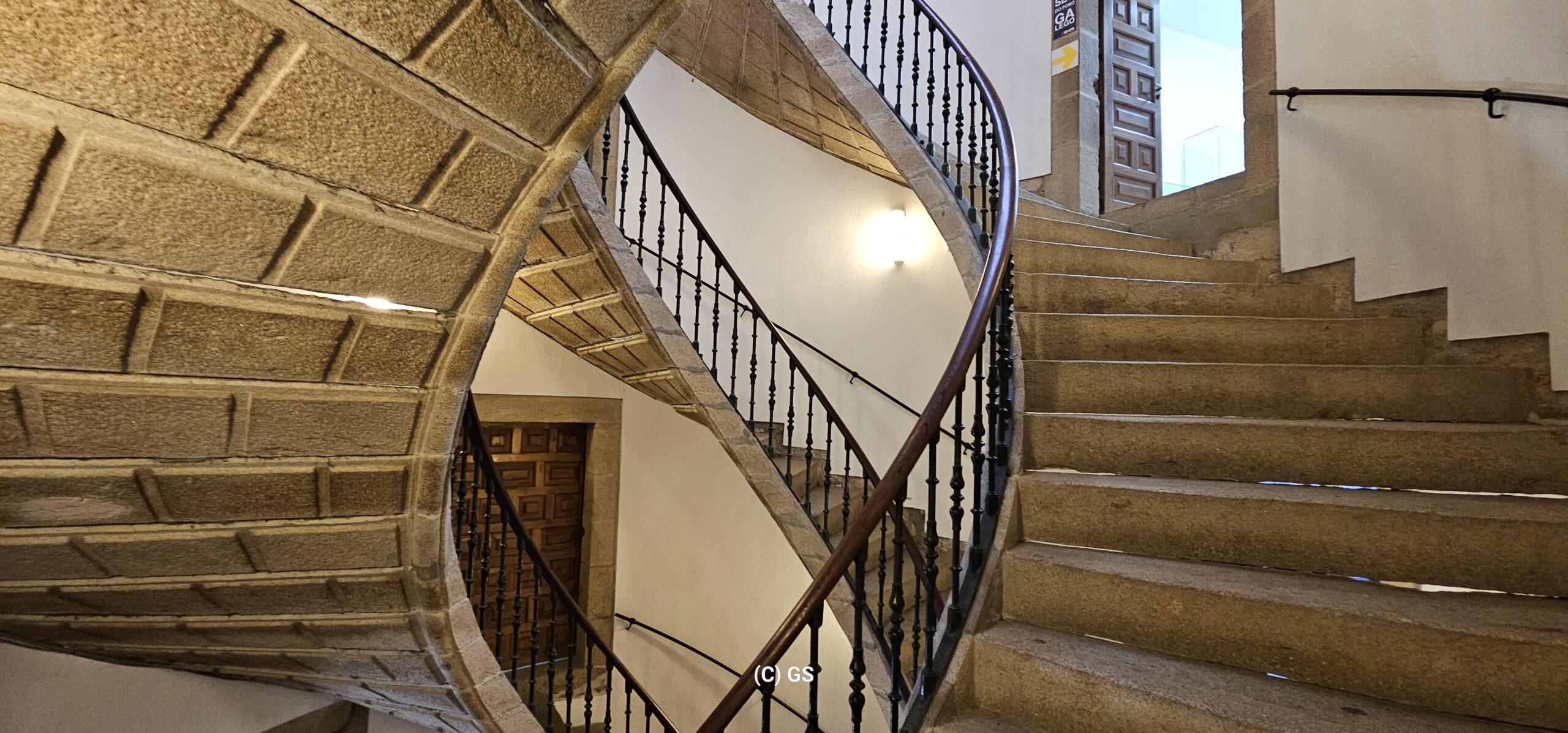 Danach habe ich mir eine Eintrittskarte für die geführte Besteigung des Daches und der Türme gekauft – nur um 16:30 Uhr gab es noch eine Möglichkeit. Ich bummelte durch die Stadt, besichtigte das Museum der Kathedrale und ging zum Museum des Galizischen Volkes. Hier war ein großer Querschnitt über deren Lebensweise eindrücklich dargestellt. Besonders in Auge stach eine doppelte Wendeltreppe.