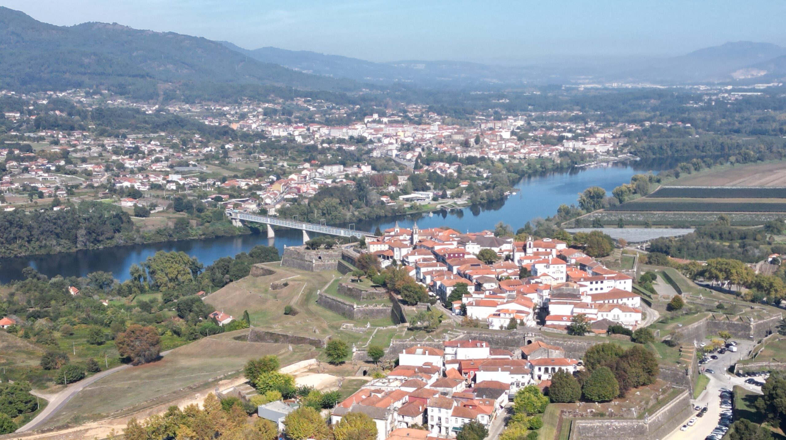Nach der spanischen Grenzstadt Tui fuhr ich über eine doppelstöckige Brücke aus dem Jahre 1885, unten für den Straßenverkehr, oben für den Schienenverkehr über den Rio Mino und war in PORTUGAL. Hier hat es eine andere Zeitzone und die Uhr stellte sich 1 Stunde zurück. Nach ca. 1 Kilometer besuchte ich die Fortaleza de Valenca, einer mittelalterlichen, sehr großen Festungsanlage mit einem sehr schönen Altstadtkern. Ein Rundgang bei herrlichem Wetter, ein Blick zurück nach Tui-Spanien und ein paar Fotos mit der Drohne waren auf dem Programm.