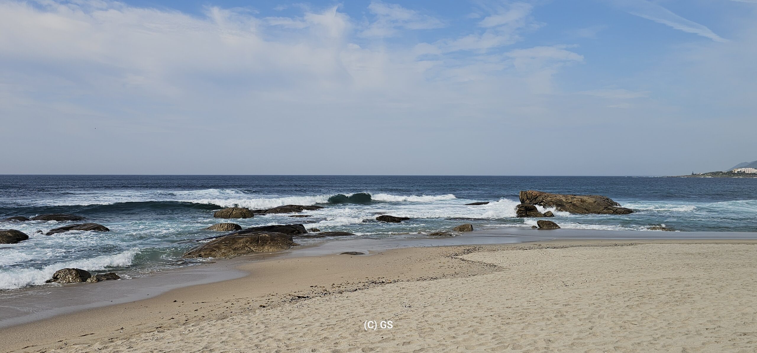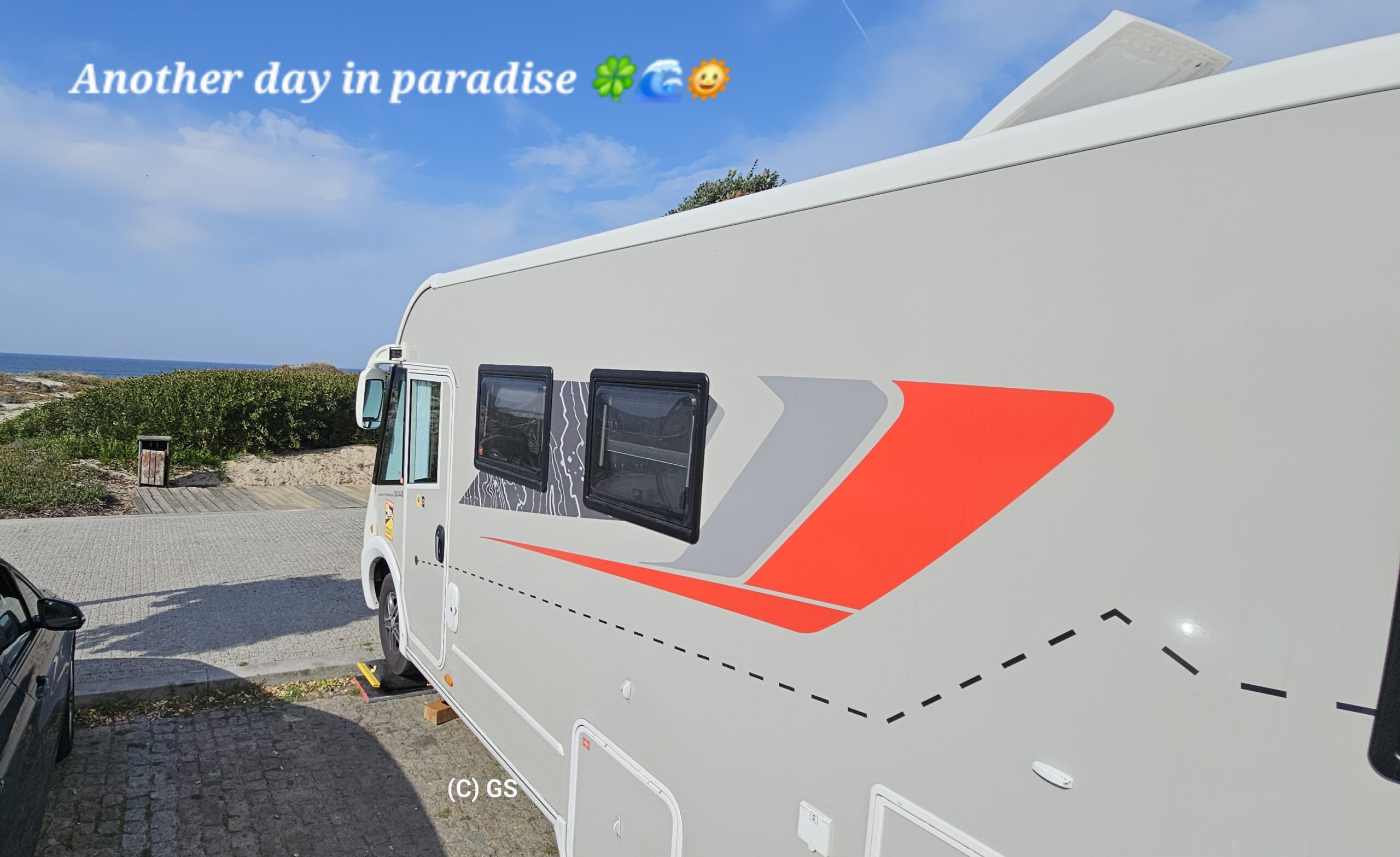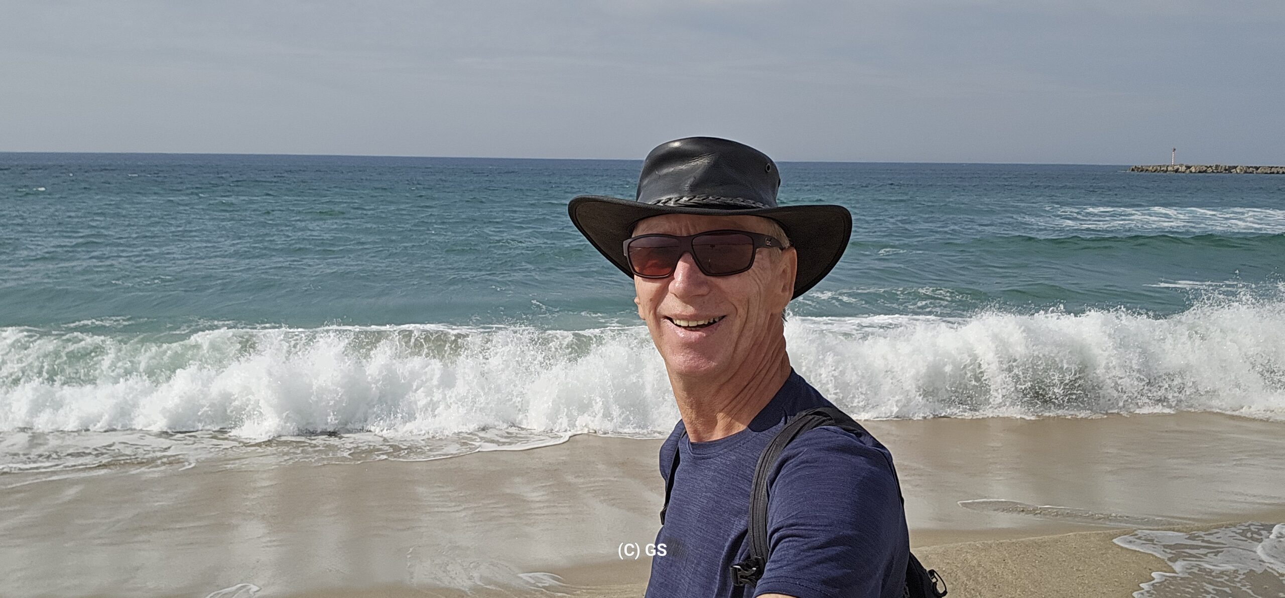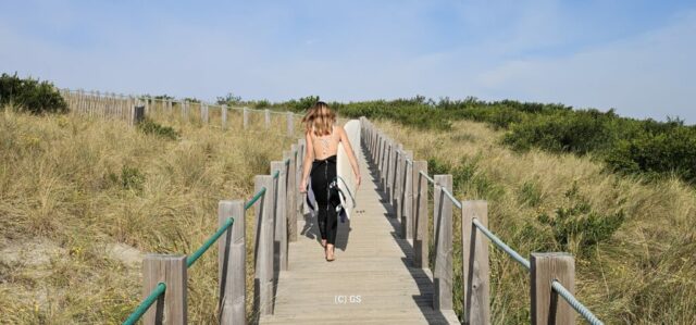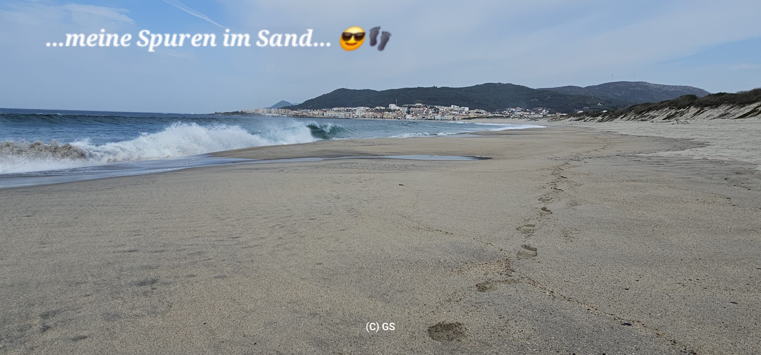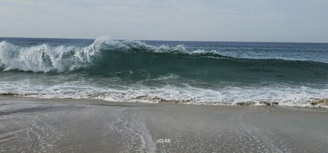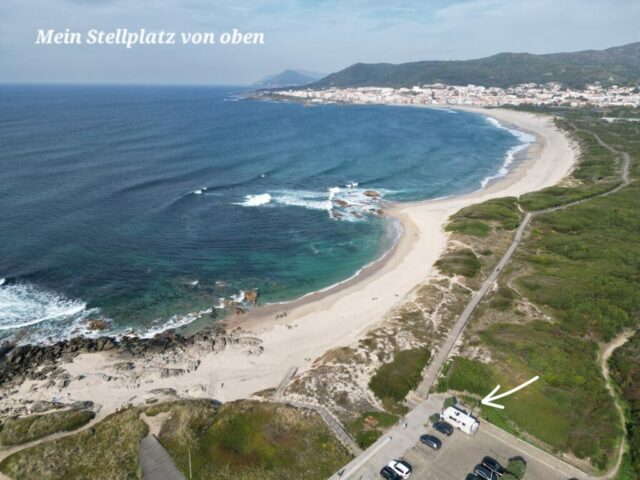 Zurück gehe ich am Sandstrand entlang. Die Wellen sind in der Zwischenzeit deutlich größer geworden, der Wind hat auch etwas zugenommen. Die 24 Grad sind gerade recht und schon bald bin ich nach 12 km Fußmarsch wieder zurück beim Wohnmobil und mache noch ein paar Drohnenfotos.