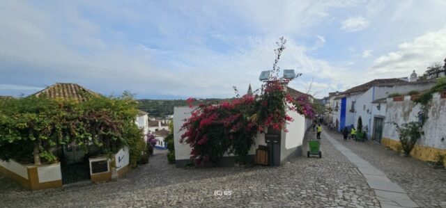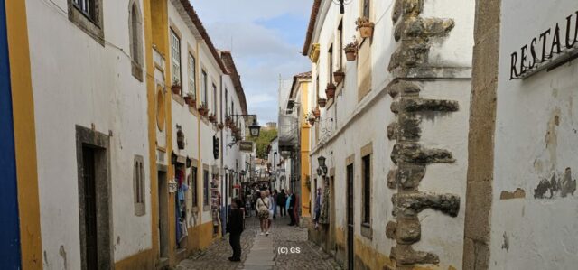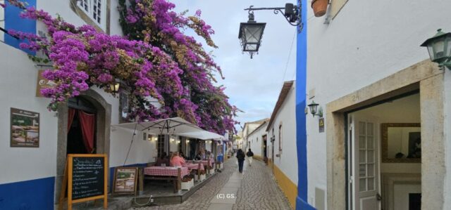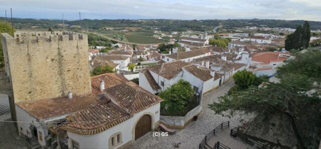 Beim schlendern durch die Flaniermeile sticht mir ein Leinenhemd ins Auge – genau in meinen Lieblingsfarben. Das Preis-Leistungsverhältnis ist OK und es passt auch. Wie ich es bei meinen vielen Jahren im Ausland gelernt habe, spreche ich den Verkäufer indischer Abstammung auf einen „Discount“ an und bekomme ohne langes verhandeln 20 % Nachlass. Beide sind damit zufrieden…. Bedingt durch den relativ starken Wind gehe ich wieder zurück zum Womo und fahre kurzentschlossen weiter – zuerst nach Obidos. Dies sei die bekannteste und meistbesuchte historische Kleinstadt Portugals. Ein schönes mittelalterliches Ensemble aus weiß getünchten, mit Blumen geschmückten Häusern, engen Kopfsteinpflastergassen und einer trutzigen Burg. Sehr touristisch, und so fahre ich bald nach Peniche weiter. Dies ist auch eine der portugiesischen Surf-Hauptstädten, insbesondere der Supertubos Beach. Hier finden auch Weltmeisterschaften statt, den die Wellen gelten als die besten in Portugal, welche über einer Sandbank brechen und sich zu einer Röhre formiert.