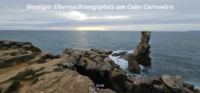 Direkt am Leuchtturm Miradouro Cabo Carvoeiro finde ich einen super Platz direkt an der Klippe mit Blick aufs Meer. Hier bleibe ich über Nacht stehen. Der starke Wind lässt die „Hütte“ zwar etwas schaukeln, was mich aber nicht stört. Leider hat es zu viele Wolken, sodass es keinen schönen Sonnenuntergang gibt. Wieder ein toller Tag auf den ich mit einem Gläschen Tinto de Verano Lemon anstoße…