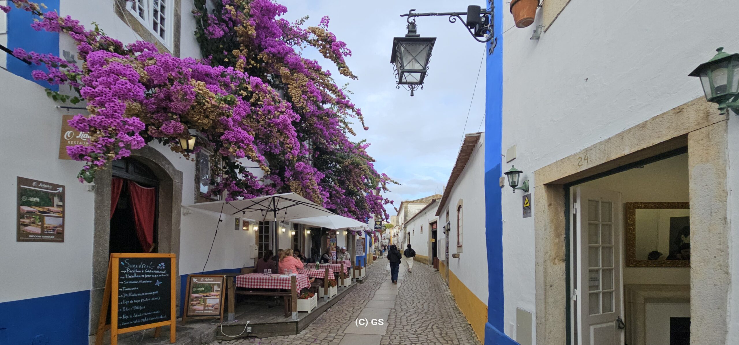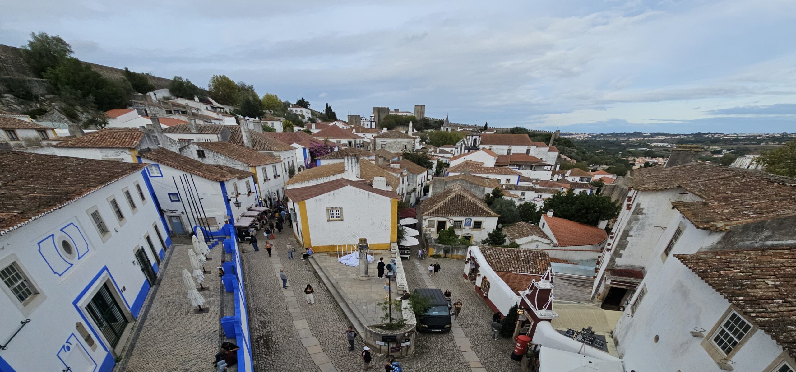 Beim schlendern durch die Flaniermeile sticht mir ein Leinenhemd ins Auge – genau in meinen Lieblingsfarben. Das Preis-Leistungsverhältnis ist OK und es passt auch. Wie ich es bei meinen vielen Jahren im Ausland gelernt habe, spreche ich den Verkäufer indischer Abstammung auf einen „Discount“ an und bekomme ohne langes verhandeln 20 % Nachlass. Beide sind damit zufrieden…. Bedingt durch den relativ starken Wind gehe ich wieder zurück zum Womo und fahre kurzentschlossen weiter – zuerst nach Obidos. Dies sei die bekannteste und meistbesuchte historische Kleinstadt Portugals. Ein schönes mittelalterliches Ensemble aus weiß getünchten, mit Blumen geschmückten Häusern, engen Kopfsteinpflastergassen und einer trutzigen Burg. Sehr touristisch, und so fahre ich bald nach Peniche weiter. Dies ist auch eine der portugiesischen Surf-Hauptstädten, insbesondere der Supertubos Beach. Hier finden auch Weltmeisterschaften statt, den die Wellen gelten als die besten in Portugal, welche über einer Sandbank brechen und sich zu einer Röhre formiert.