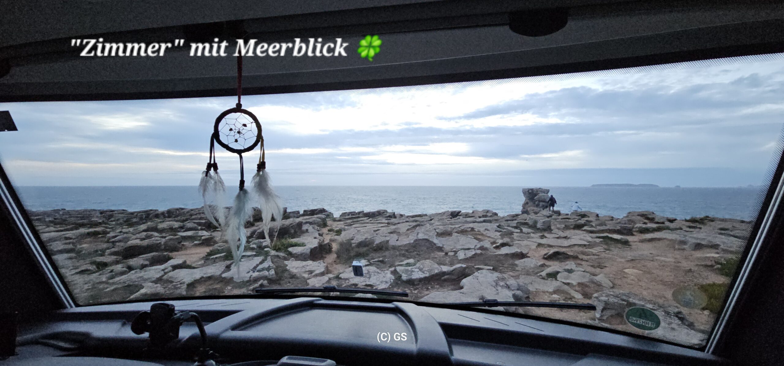 Direkt am Leuchtturm Miradouro Cabo Carvoeiro finde ich einen super Platz direkt an der Klippe mit Blick aufs Meer. Hier bleibe ich über Nacht stehen. Der starke Wind lässt die „Hütte“ zwar etwas schaukeln, was mich aber nicht stört. Leider hat es zu viele Wolken, sodass es keinen schönen Sonnenuntergang gibt. Wieder ein toller Tag auf den ich mit einem Gläschen Tinto de Verano Lemon anstoße…