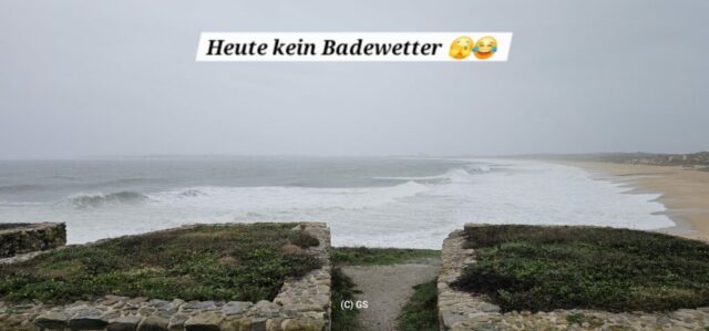 In der Nacht fängt es an zu regnen und der Wind wird stürmisch. Die exponierte Lage beim Leuchtturm in Peniche ist zwar sehr schön, aber bei diesen Wetterbedingungen nicht ideal. Zeitlich in der Früh fahre ich daher ab und stehe danach gut windgeschützt hinter der Stadtmauer.