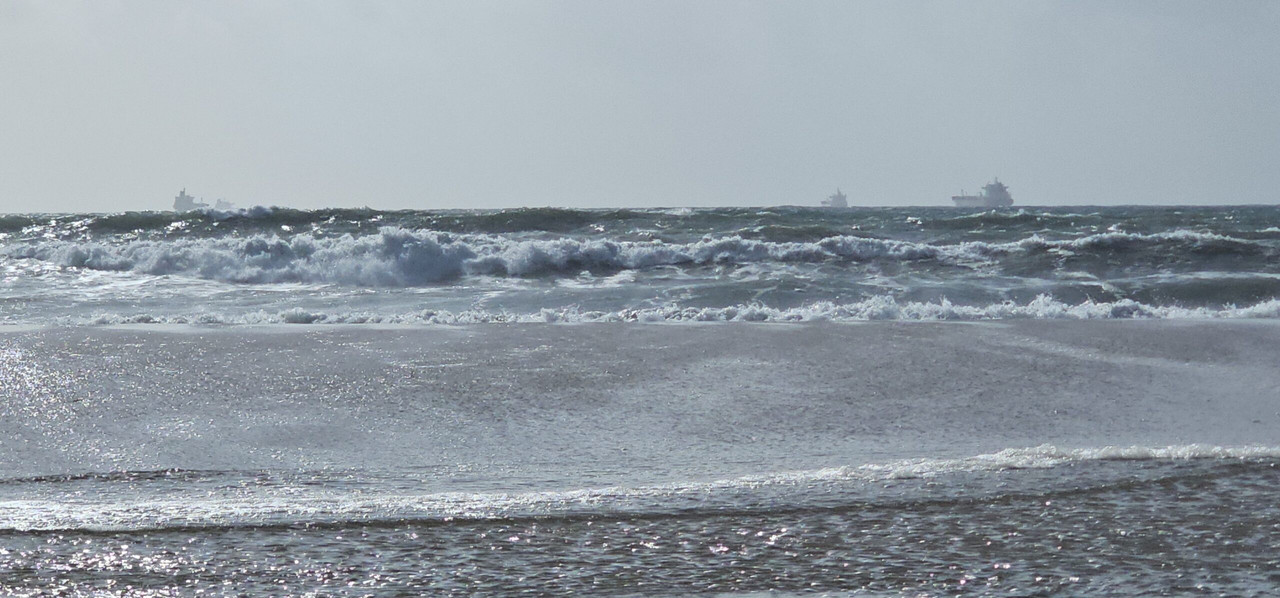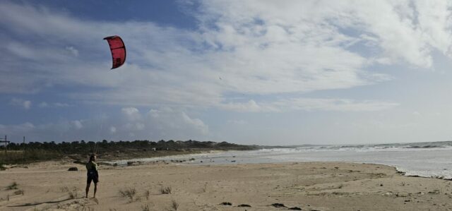 Etwas Sonne und der starke Wind laden am Nachmittag dazu ein, wieder einmal mit meinem kleinen Lenkdrachen am Strand zu spielen. Das Fluggerät geht unglaublich ab, teilweise zieht mich der kleine Fetzen Stoff sogar über den Sand. Ein Kitesurfer wagt sich hinaus auf die tosenden Wellen – er hat es gut im Griff und offensichtlich viel Spaß.