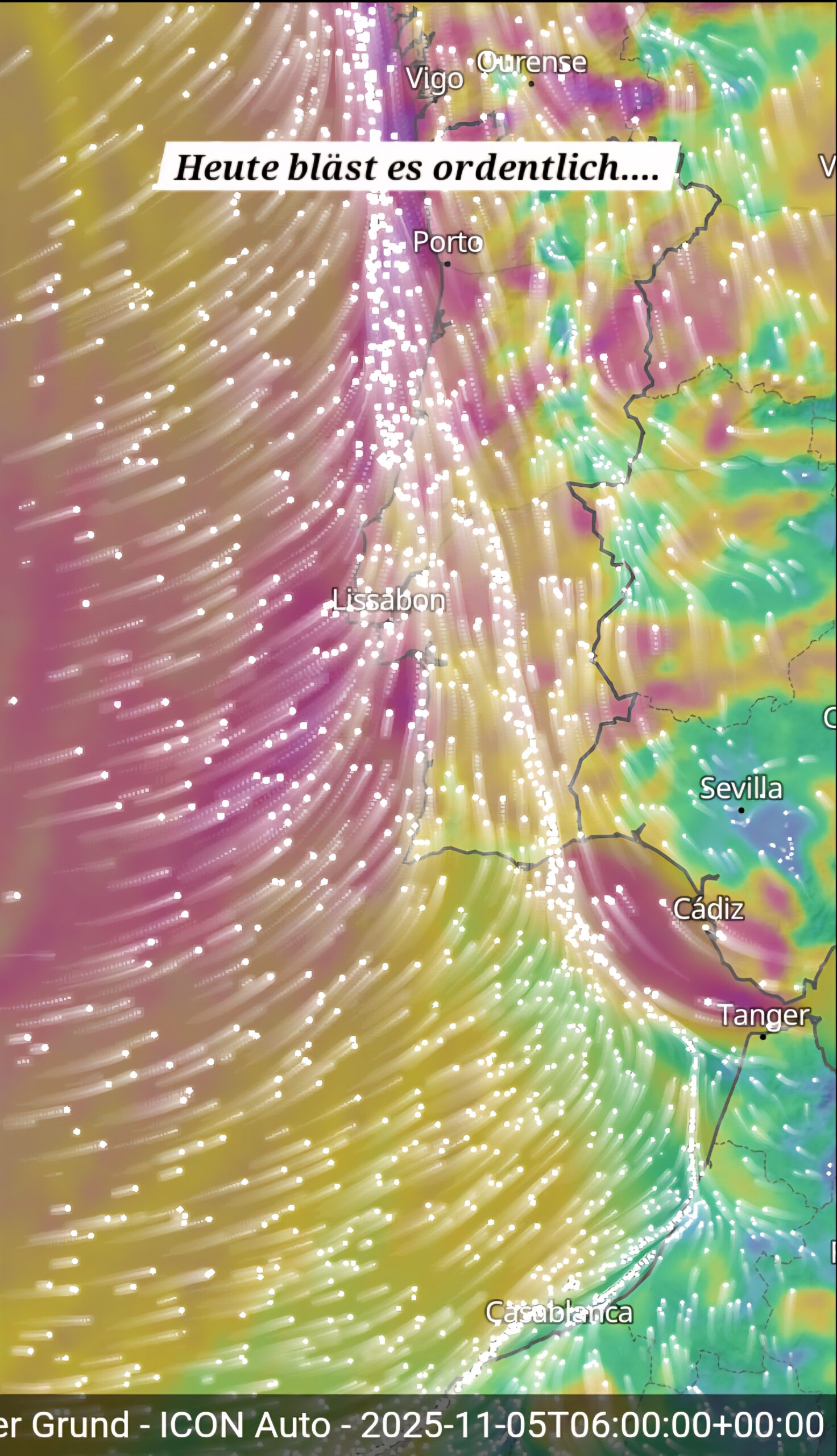 Da die Prognose weiterhin kein sehr stabiles Wetter verspricht, überlege ich mir die ab Samstag geplante 4-tägige Wanderung auf dem Fischerpfad (Rota Vicentina) so einzuteilen, dass ich jederzeit abbrechen kann, weil ich bei Wind und Regen keine Lust dazu habe. Das gestaltet sich allerding etwas schwieriger als angenommen, da öffentlichen Busse nicht alle Tage in beide Richtungen fahren. Schlussendlich finde ich eine Variante, bei der ich die Teilstücke nicht in der Reihenfolge von Nord nach Süd mache, sondern ein bisschen vor und zurück. Wie auch immer, die Abfolge ist ja schlussendlich egal.