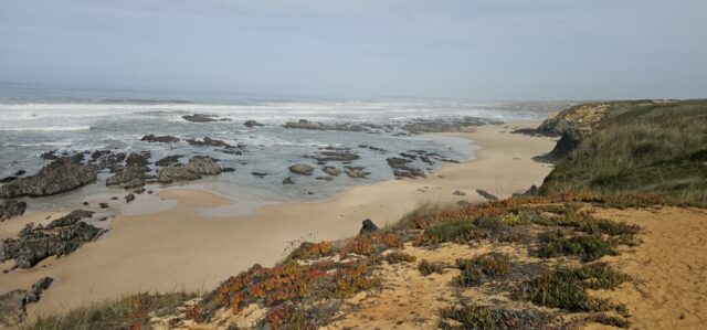 Früher als gedacht komme ich nach 19 Kilometern schon um 12:30 Uhr in Almograve an und kann online meine Busfahrt zurück nach Porto Covo umbuchen, welche erst um 16:50 Uhr gewesen wäre. Die Abfahrt ist um 13:35 Uhr und nach 35 Minuten im Rede Expressos Bus bin ich kurz nach 14 Uhr schon wieder in Porto Covo. Bald darauf in ich wieder zurück beim Womo. Alles ist bestens und andere Camper haben sich daneben gestellt.