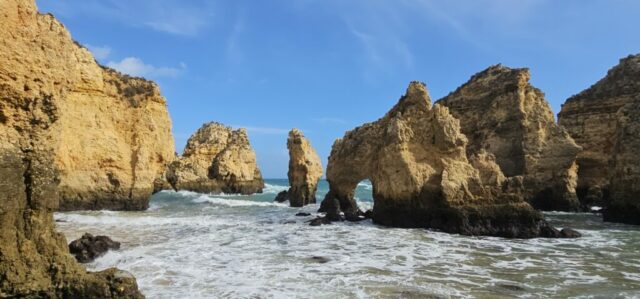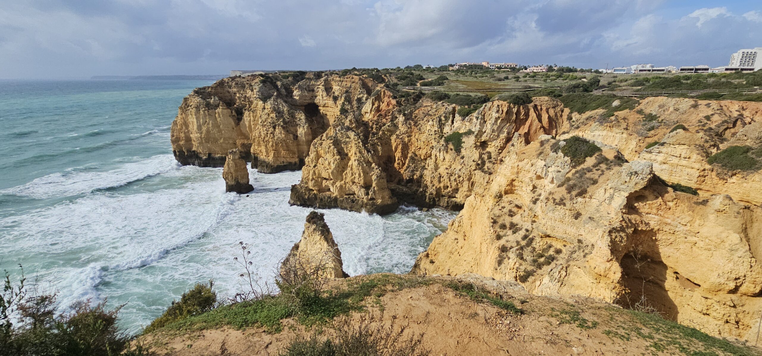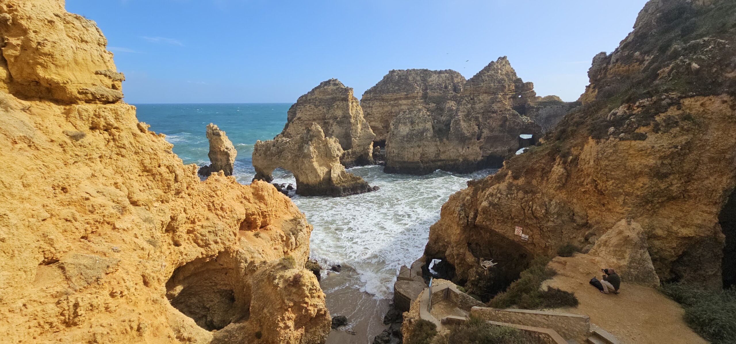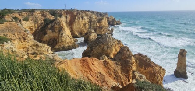 In der Zwischenzeit scheint die Sonne und ich mache mich auf, die Bilderbuch schöne Klippe Ponta la Piedade anzuschauen. Schon auf dem Weg dorthin schlendere ich entlang anderer Felsklippen, welche in verschiedenen Rottönen wunderschön anzuschauen sind. Das Highlight ist dann wirklich die Ponta la Piedade mit ihren beeindruckenden Grotten und Bögen. So viele schöne Perspektiven werden ein aussortieren der Fotos am Abend nicht einfach machen.