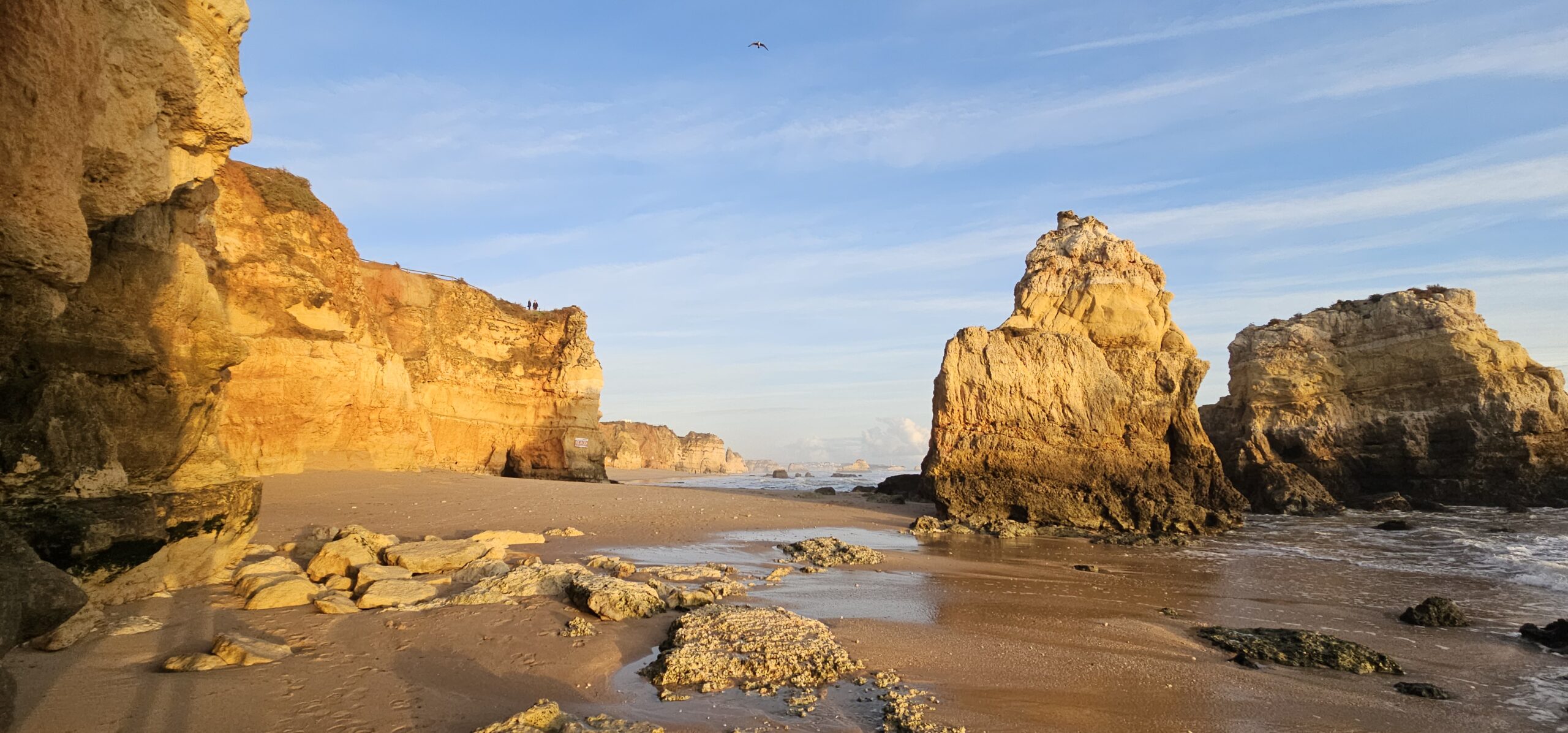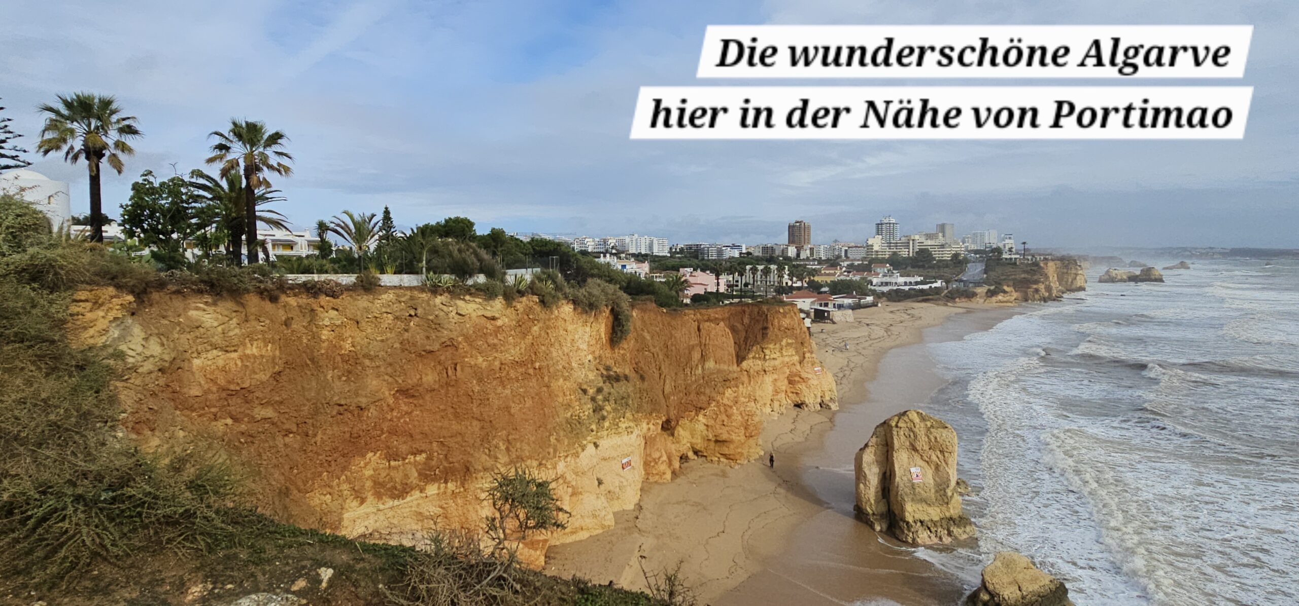Ich setze meine Reise fort, entleere meinen Wassertank bei einer auf der Strecke liegenden Tankstelle und fahre dann weiter. Wieder setzen heftiger Wind und Schauer ein, aber ich komme gut in Portimao an und der angepeilte Platz ist super. Völlig ruhig und nur ca. 200 m vom schönen Klippen- und Sandstrand entfernt. Um 14 Uhr klart es rasch auf und ich spaziere entlang den Klippen – wiederum eine sehr eindrückliche Szenerie. Hier an die Algarve komme ich bestimmt nochmals her, das lohnt sich auch ein 2. Mal!