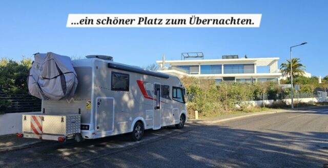 Diese Nacht bleibe ich noch in Carvoeiro. Der Parkplatz im Villenviertel könnte nicht besser sein.