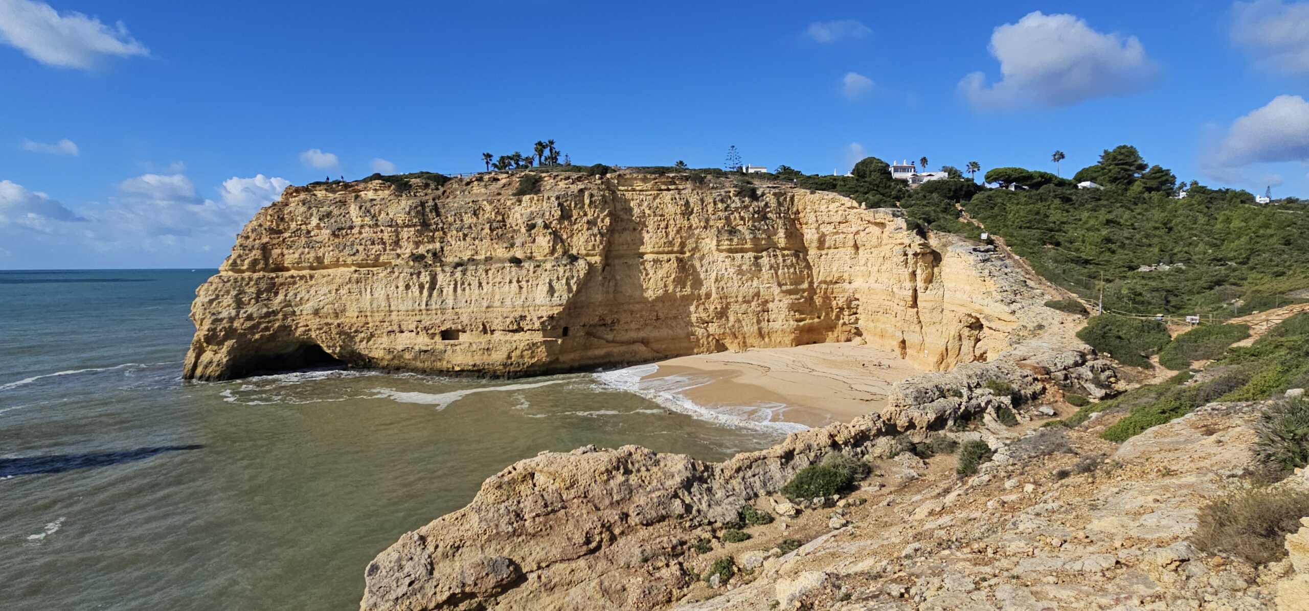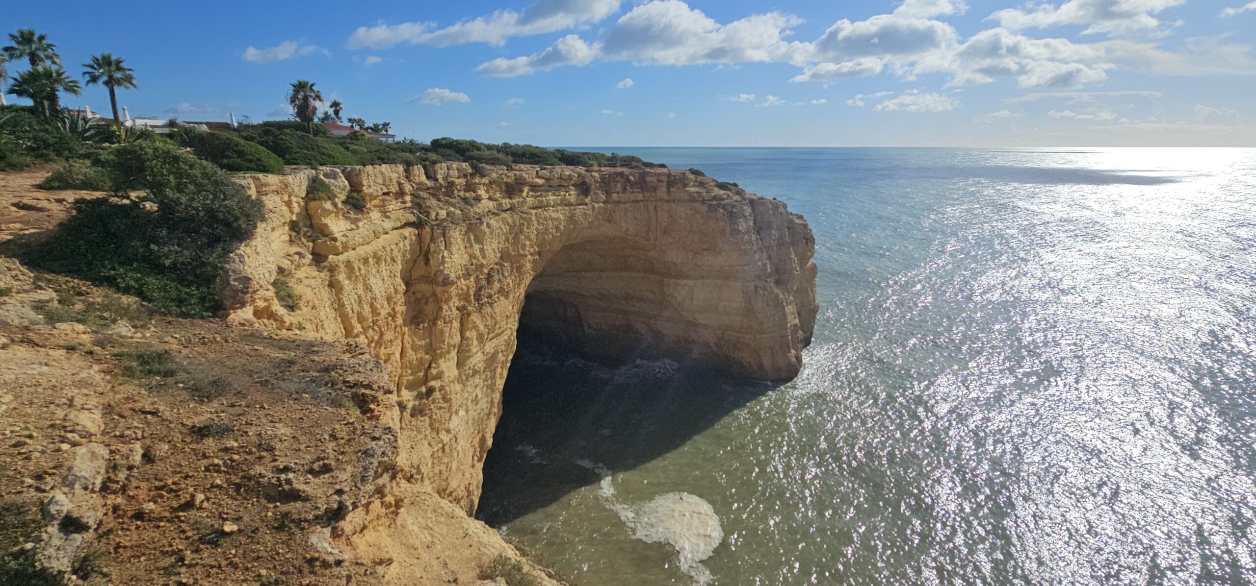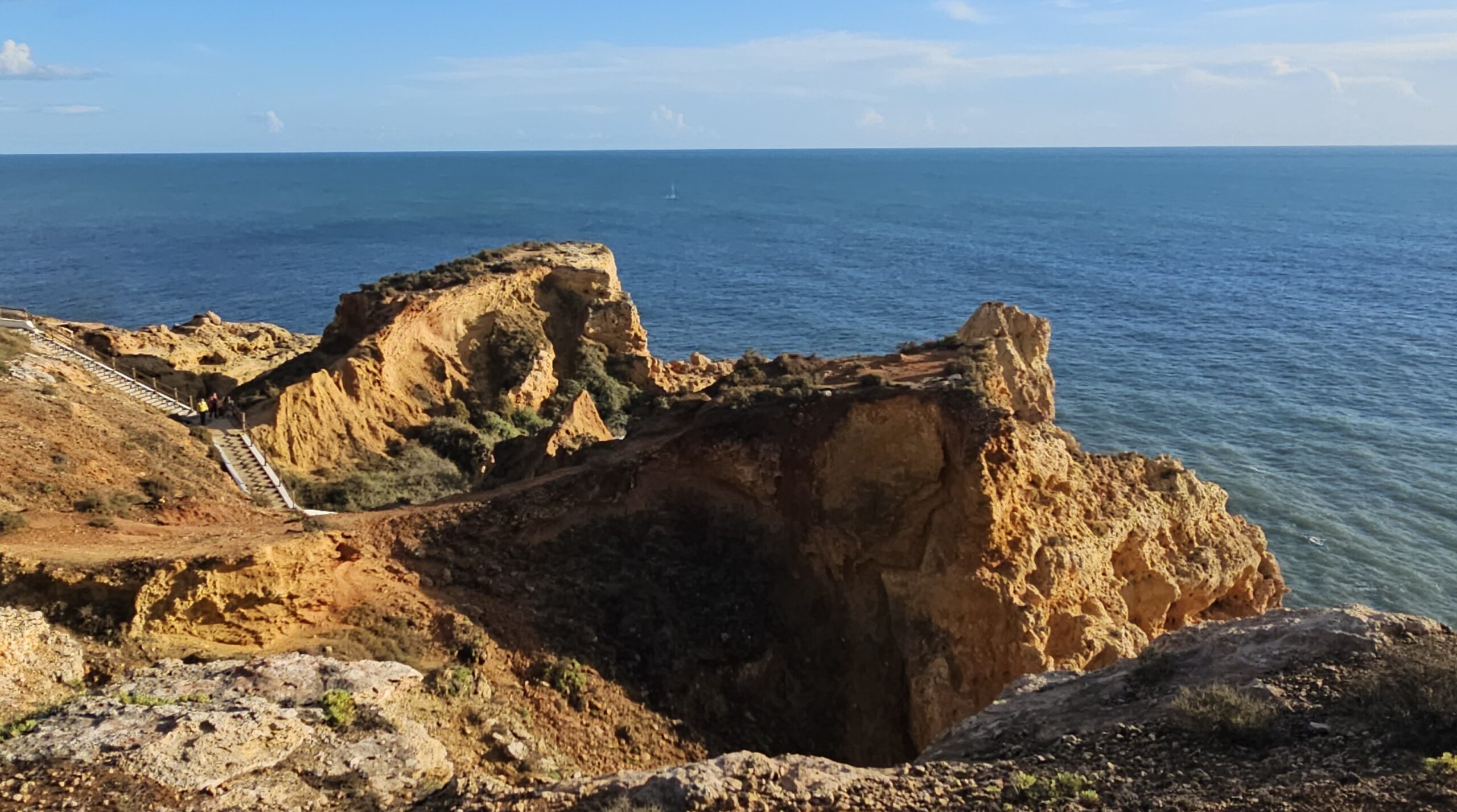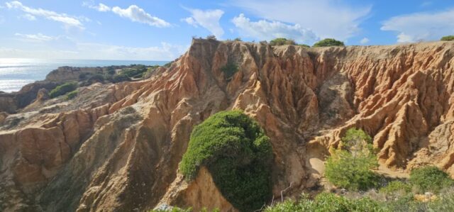 Ein schöner Sonnenaufgang – der Tag beginnt vielversprechend. Um ca. 09.15 Uhr gehe ich Richtung Miradouro do Vale Suspenso. Hier beginnt der Küstenwanderweg „Trilho dos 7 Vales Suspensos“, auf Deutsch „Sieben hängende Täler“, einem der schönsten Wanderwege der Algarve, welcher kürzlich zum besten Wanderziel Europas gewählt wurde! Er ist auf dem kürzesten Weg 6 km lang. Da ich aber immer wieder Abstecher zu schönen Aussichtspunkten mache, kommen pro Strecke gut 8 km zusammen.