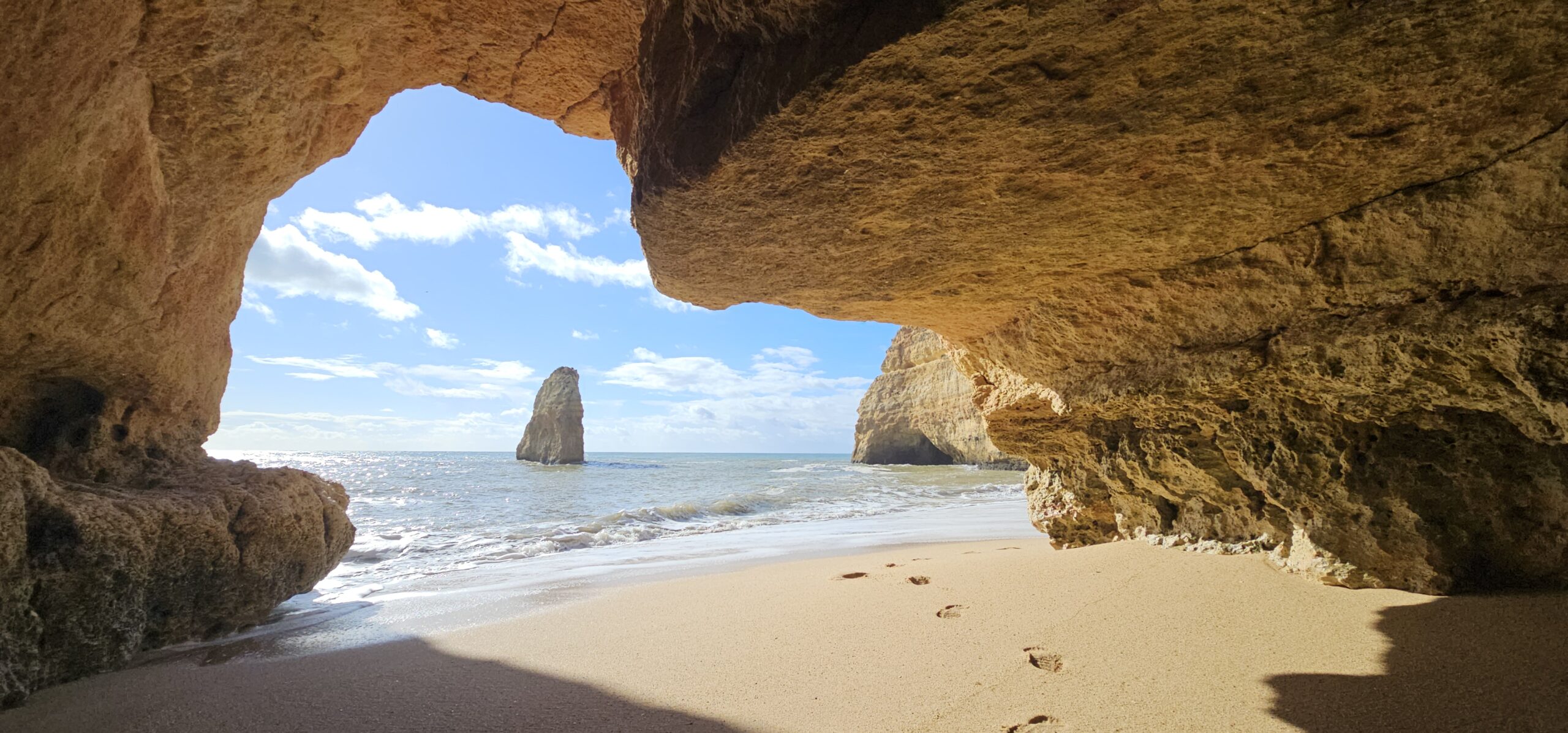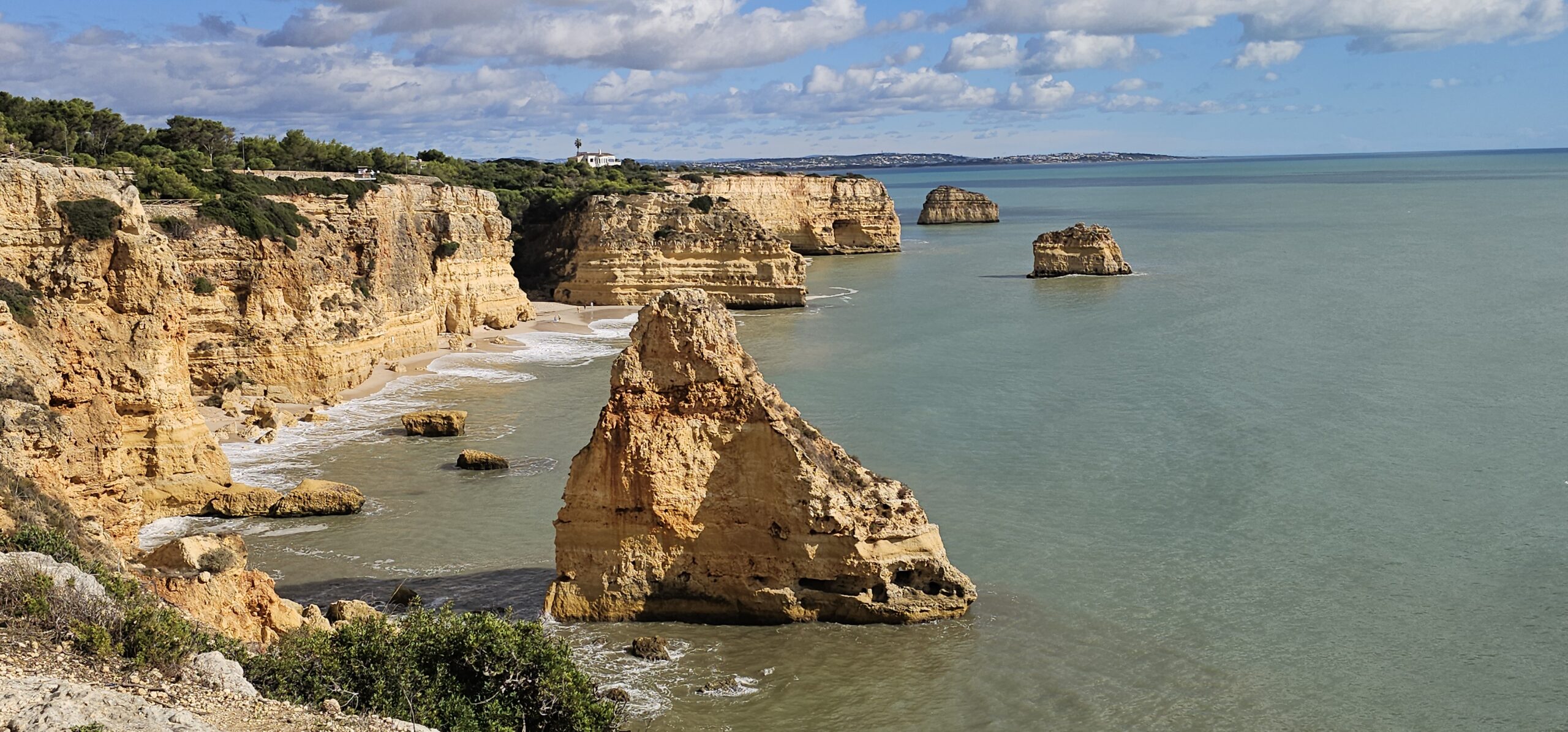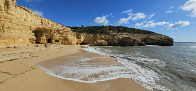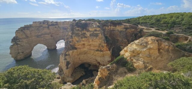 Ein schöner Sonnenaufgang – der Tag beginnt vielversprechend. Um ca. 09.15 Uhr gehe ich Richtung Miradouro do Vale Suspenso. Hier beginnt der Küstenwanderweg „Trilho dos 7 Vales Suspensos“, auf Deutsch „Sieben hängende Täler“, einem der schönsten Wanderwege der Algarve, welcher kürzlich zum besten Wanderziel Europas gewählt wurde! Er ist auf dem kürzesten Weg 6 km lang. Da ich aber immer wieder Abstecher zu schönen Aussichtspunkten mache, kommen pro Strecke gut 8 km zusammen.