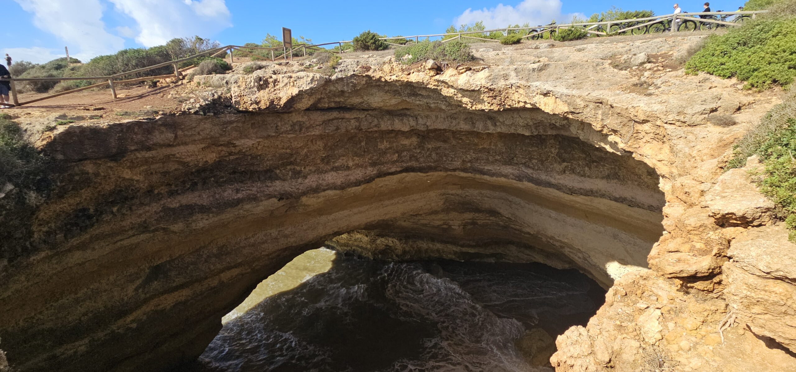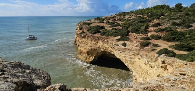 Hatte ich gestern schon gedacht, dass die Klippen nicht mehr eindrucksvoller sein können, hat dieser Streckenabschnitt das völlig getoppt! Unzählige Höhlen, steil abfallende Klippen in rot-orange-gelb Tönen, dazu der strahlend blaue Himmel – unbeschreiblich schön! Eine angenehme Temperatur um die 20 Grad lassen es zu, den ganzen Tag im T-Shirt unterwegs zu sein.