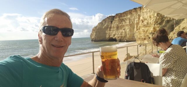 Nach dem ich wieder zurück beim Startpunkt bin, genieße ich erst einmal ein Bier in einer Strandbar, dazu ein Cheeseburger und Pommes.