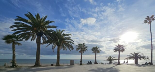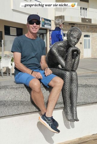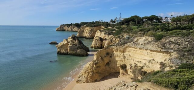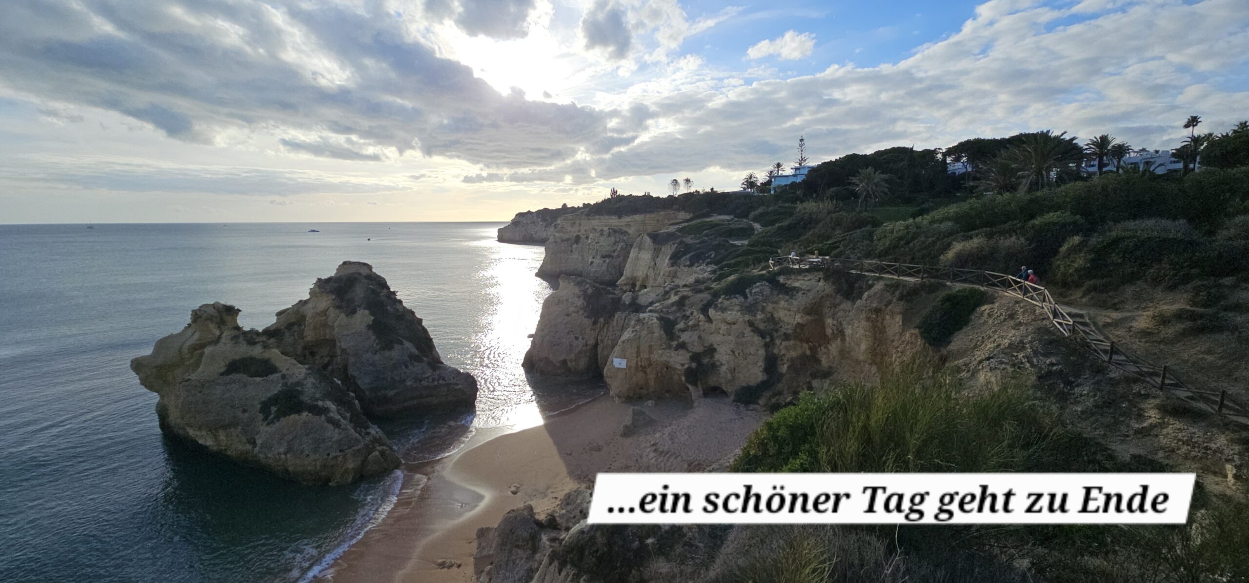 Ein schöner Sonnenaufgang – auch heute wieder. Um ca. 10:30 Uhr gehe ich nach Armacao de Pera, den Nachbarort. Immer den Klippen entlang, dann hinunter zum Sandstrand, viele Stufen wieder hoch – bis ich versehentlich in einer großen 5-Stern Hotelanlage bin und es braucht eine Weile, bis ich den Ausgang finde.