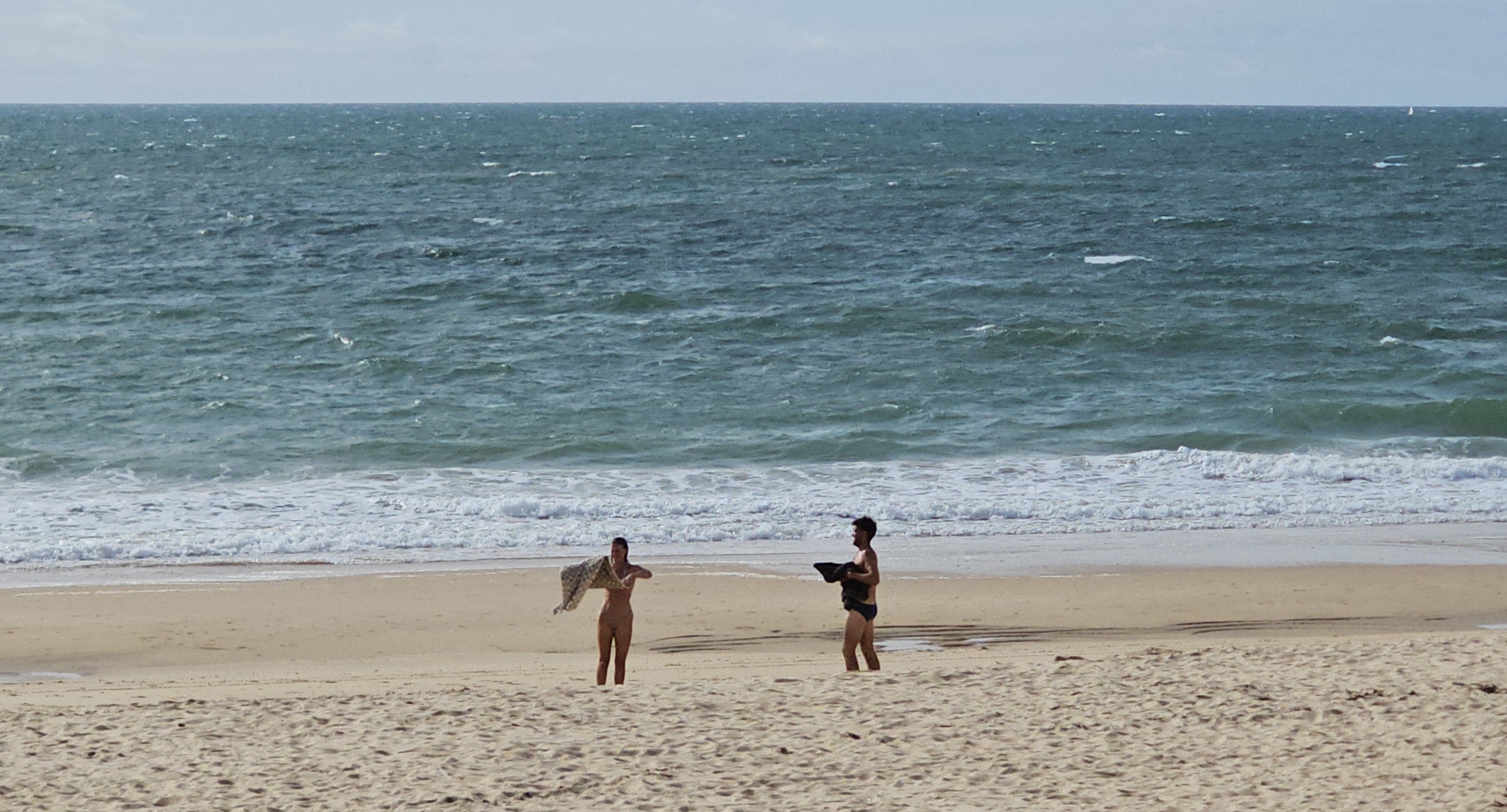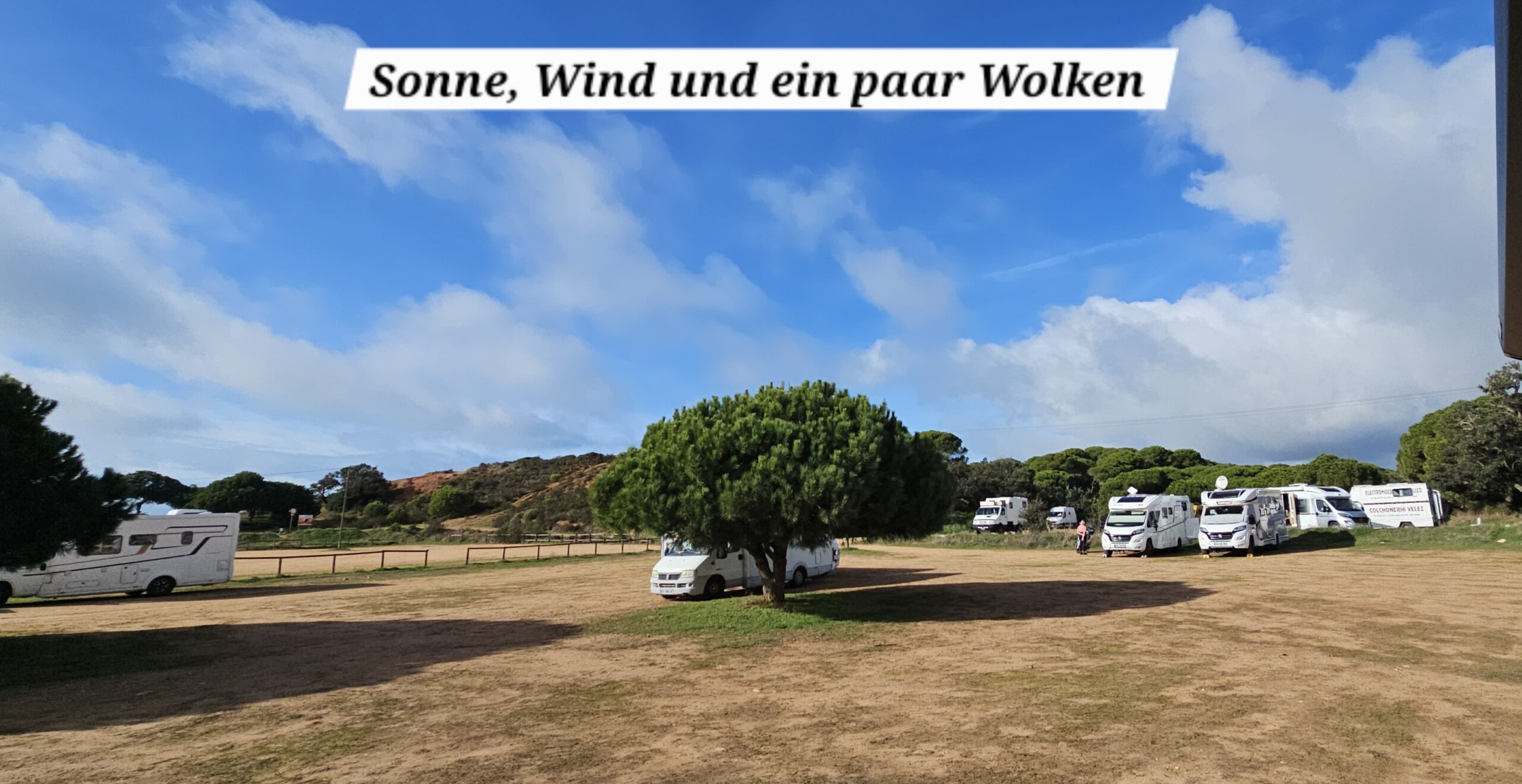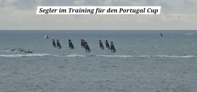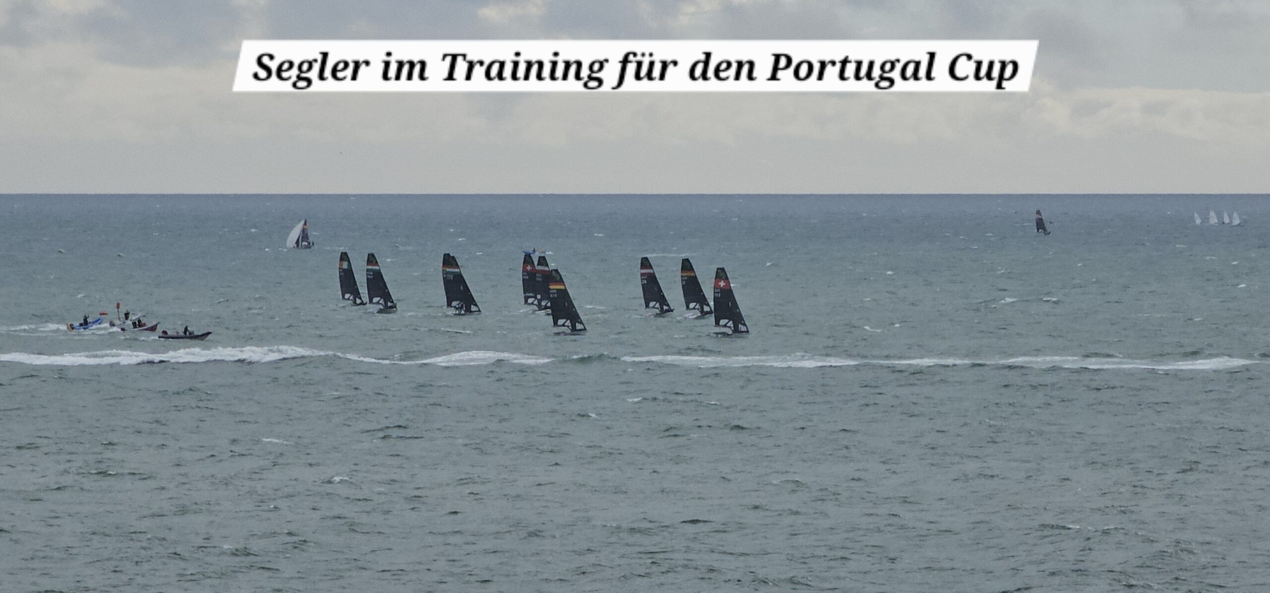Der mäßig starke Wind ist für die Segler sehr willkommen, die aus aller Welt in den Nachbarort gekommen sind und trainieren für den Großen Preis von Portugal, welcher ab dem 27.11. hier stattfinden wird. Auch ein paar Unempfindliche planschen ein bisschen im Wasser.