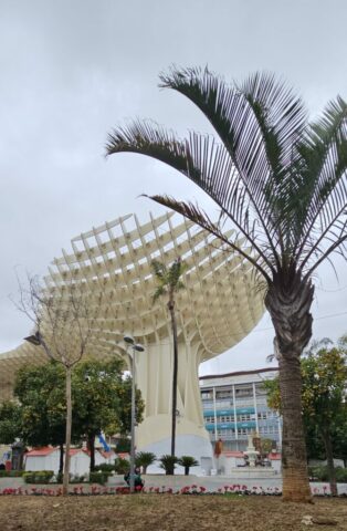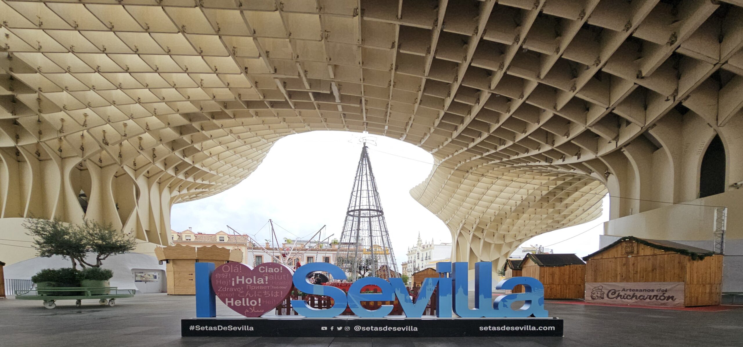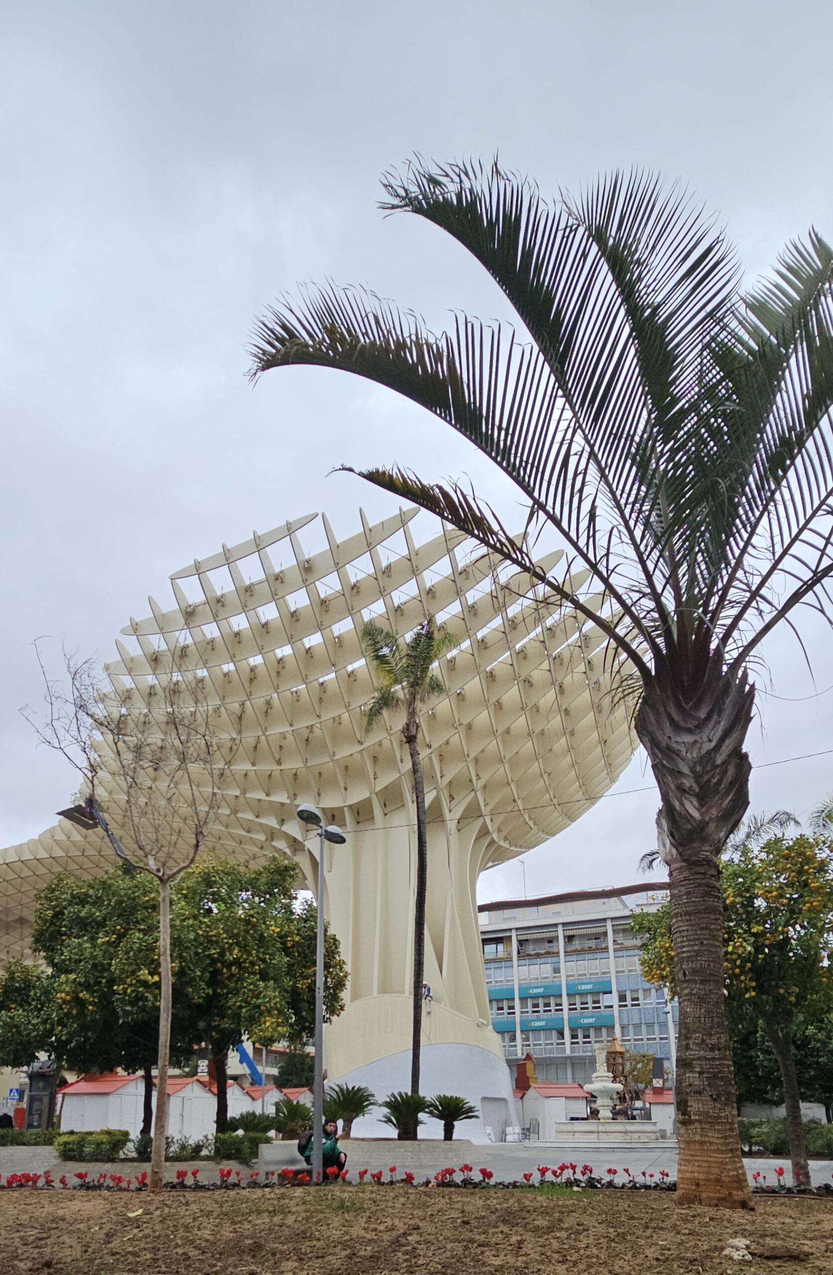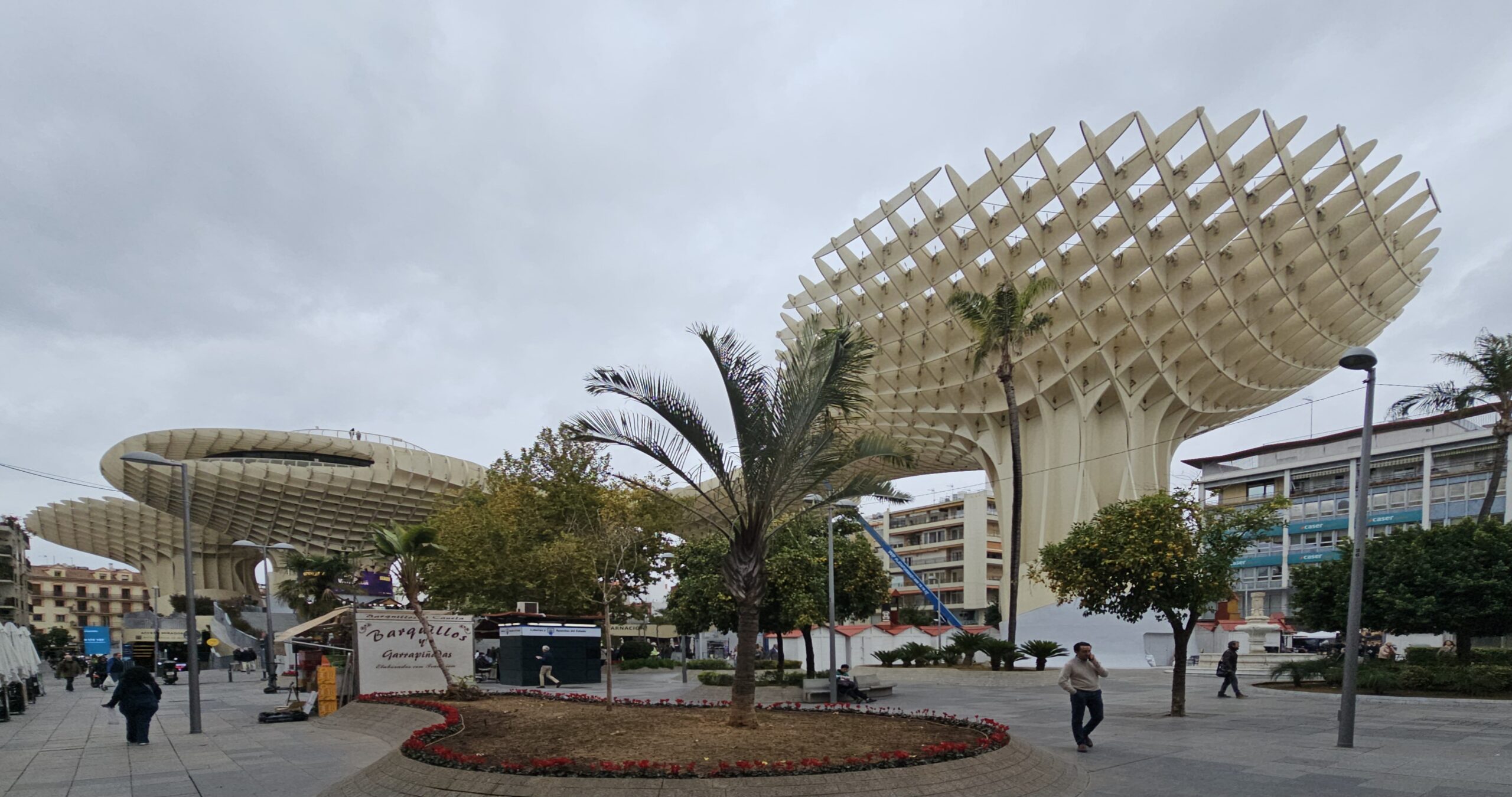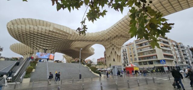 Mein heutiges Ziel ist Setas de Sevilla. Auch genannt Metropol Parasol, eine parasolförmige Mischung einer Hybridkonstruktion aus Holz, Beton und Stahl, wurde vom dem deutschen Künstler und Architekten Jürgen Mayer kreiert. Das neue Wahrzeichen von Sevilla hat eine Länge von 150 m, eine Breite von 70 m und eine Höhe von 26 m und gilt als größtes Holzbauwerk der Welt.