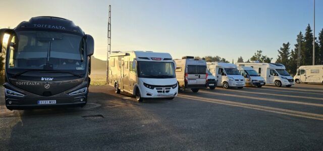 Ein Blick aus dem Fenster – ich bin schon wieder von einem Omnibus und Campern „umzingelt“. Soooo viel Platz rund herum… Naja, nicht jammern – toll, dass es solch gute und sichere Parkplätze gibt wo Wohnmobile erlaubt sind und kostenlos zur Verfügung gestellt werden.