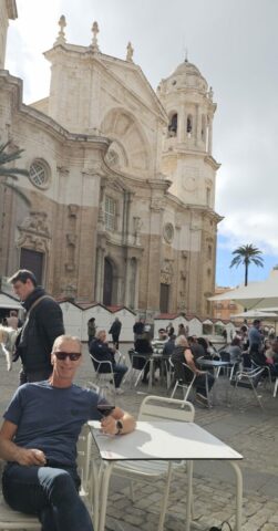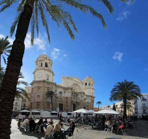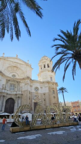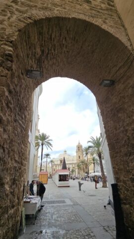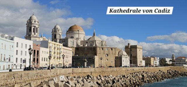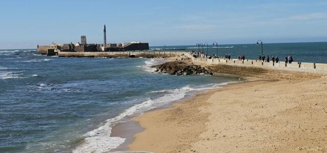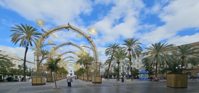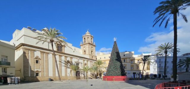Im westlichen Teil ist ein Castillo, danach die im Meer vorgelagerte Festung De San Sebastian. Weiter am Weststrand von Cadiz fahre ich auf guten städtischen Radwegen nach Süden. Von Weitem ist schon die Kathedrale von Cadiz zu sehen. Rundherum ist ein Weihnachtsmarkt, Musiker spielen Flamenco, die Leute sind wohlgelaunt – essen und trinken was im Freien – eine sehr schöne, friedliche, südländische Weihnachtsstimmung!