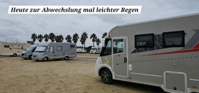 Schon vor dem Sonnenaufgang beginnt es leicht zu regnen. So war auch die Wetterprognose. Auf dem Platz am Strand wird es langsam matschig und so fahre ich, wie viele andere auch, ein paar Kilometer weiter wo ich bei diesen Verhältnissen besser stehe.