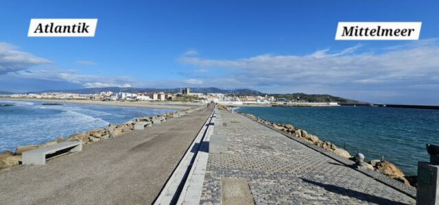 Ich gehe durch die Stadt hinunter zu der Stelle, wo das Mittelmeer und der Atlantik aufeinander stoßen. Schon interessant wenn man sich das bildlich vorstellt.