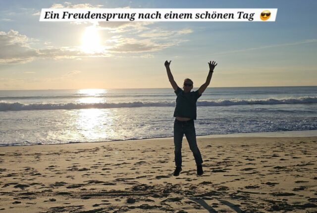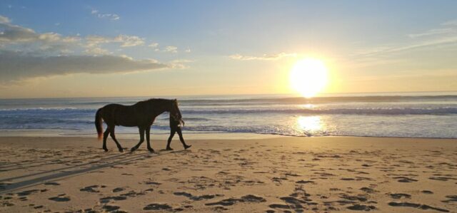 Dann gehe ich zum Strand. Es sind nur wenige Leute dort, ein paar genießen den Sonnenuntergang, eine junge Dame geht mit dem Pferd an der Wasserlinie entlang, eine wunderschöne Atmosphäre