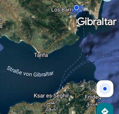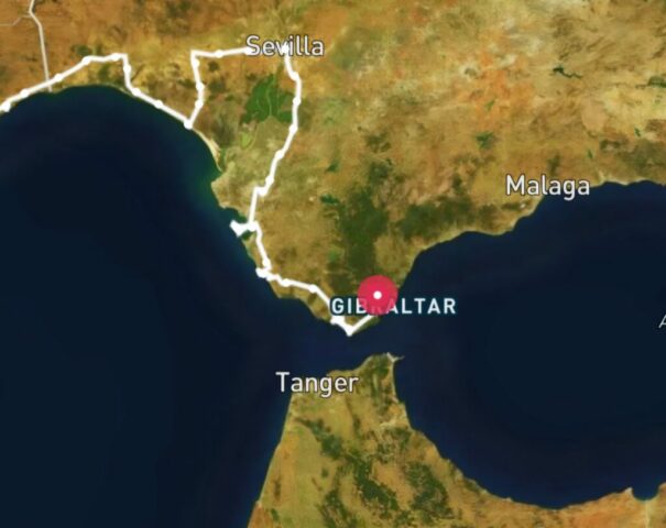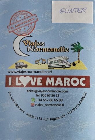 Im Moment ist das Wetter etwas wechselhaft. Nach einem wunderschönen Sonnenaufgang um ca. 08:30 Uhr zieht es am Vormittag zu. Bei einer Tankstelle in Tarifa kann man um 3 Euro Frischwasser bunkern und das Grau- und Schwarzwasser entsorgen – ein toller Service. Ich muss ein bisschen warten, doch es geht sehr rasch. Hier kaufe ich auch noch einen 10 Liter Kanister mit AdBlue da ich nicht genau weiß, wie die Versorgung in Marokko sein wird. Ein paar hundert Meter weiter fülle ich auch noch den Tank mit AdBlue und somit ist das Fahrzeug für Nordafrika gut gerüstet. Dann fahre ich Richtung Algeciras. Auf einem höher gelegenen Aussichtspunkt, wo man die Straße von Gibraltar schön übersehen kann, hat man einen tollen Blick nach Marokko. Leider ist alles schon grau in grau und wolkenverhangen. In Algeciras hat es immer viel Verkehr, aber bald bin ich beim überaus bekannten Ticketbüro Carlos Gutiérrez, seit 22 Jahren der Platzhirsch mit den besten Preisen. Zu jeder Buchung bekommt man als Geschenk noch eine Flasche Wein, einen Kuchen und eine Packung Pralinen! Ich komme bald dran – das Ticket hin und retour kostet 210 Euro, weniger als ich erwartet habe. Der Rückreisetermin bleibt offen und so kann ich mich dann Anfang März kurzfristig entscheiden, wann ich zurück nach Spanien möchte. Dort darf ich auch meine Drohne, welche nicht nach Marokko eingeführt werden darf, hinterlegen. Ein toller Service – das hilft sehr.